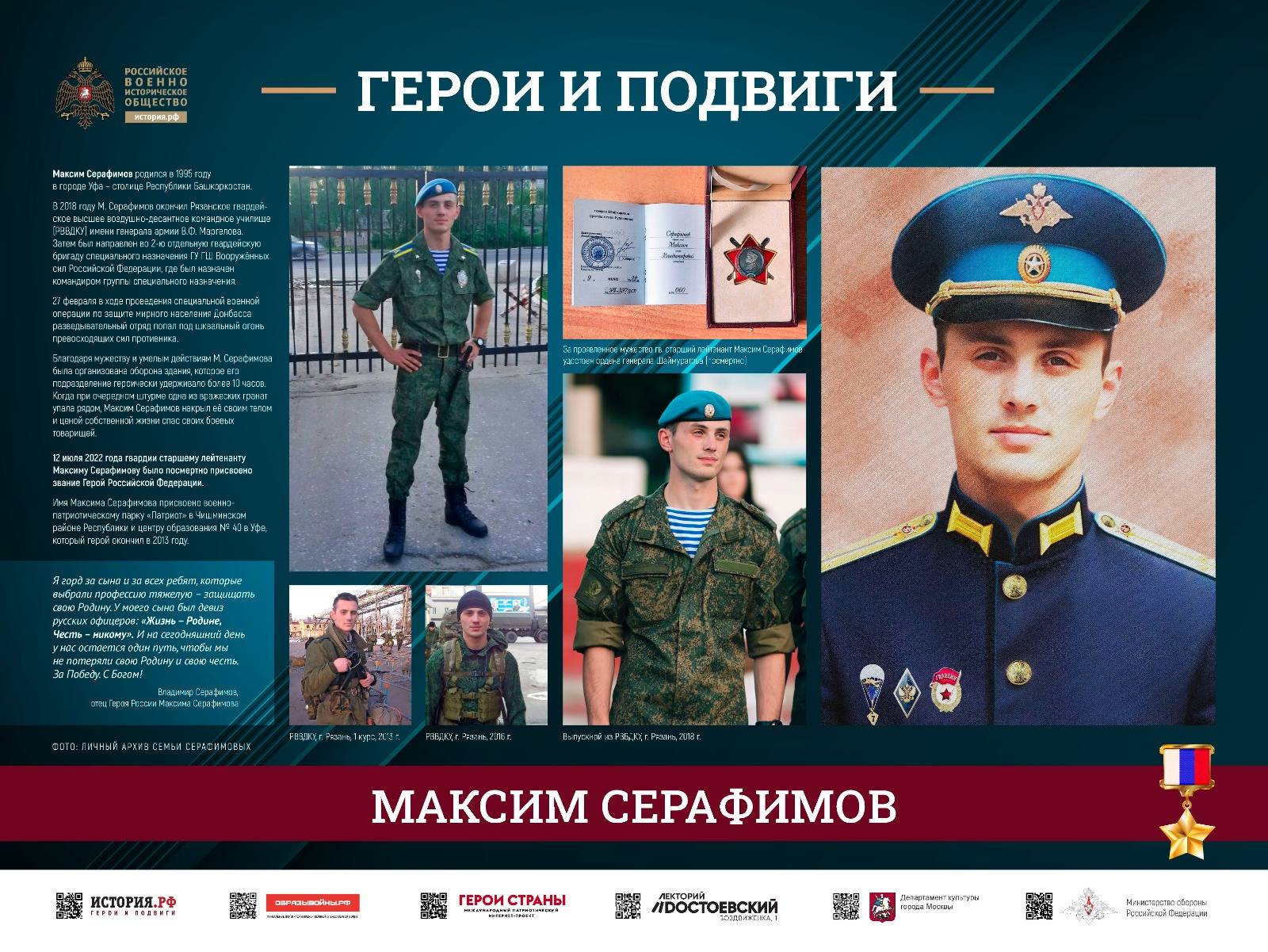 В видео запечатлен образ командира группы специального назначения, Героя России Максима Серафимова, который накрыл гранату своим телом и ценой собственной жизни спас боевых товарищей. История его жизни и подвига нашла отражение также в фотовыставке Российского военно-исторического общества «Герои и подвиги». Материалы выставки доступны в онлайн-формате.