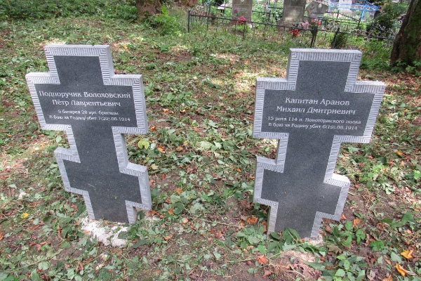 Благодаря церковно-приходской книге священника 114 новоторжского пехотного полка калининградскими поисковиками установлены имена и фамилии похороненных здесь офицеров и нижних чинов 114 полка.