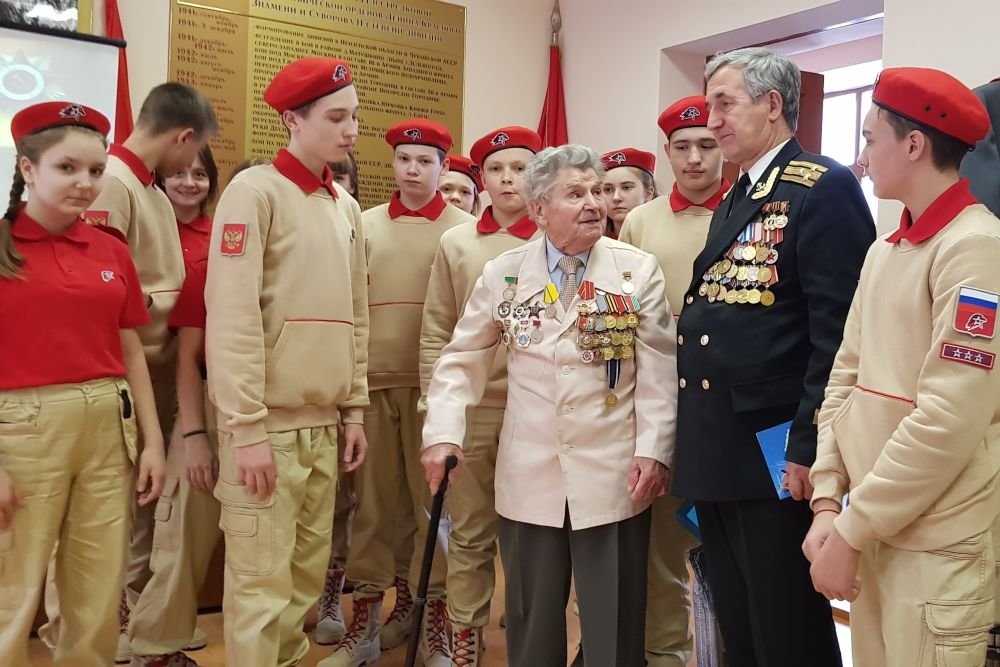 Многие ребята видели Александра Константиновича раньше только на фотографиях, украшающих стенды школьного музея. На фото – 17-летий юноша в военной гимнастерке. Чтобы уйти на фронт он приписал себе полгода. Волей судьбы попал радистом-разведчиком в ту самую 354-ю дивизию, где уже воевал его отец, участник битвы за Москву. Вспоминая их встречу в фронтовой землянке, он и сейчас смахивает слезу.