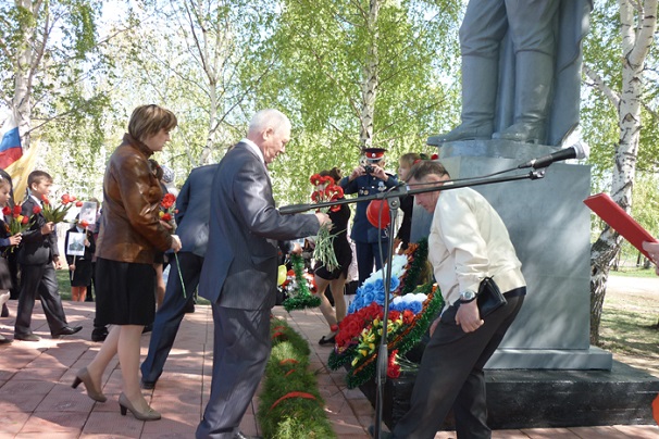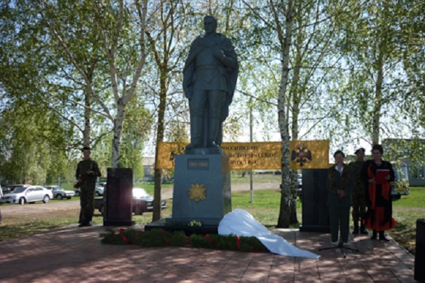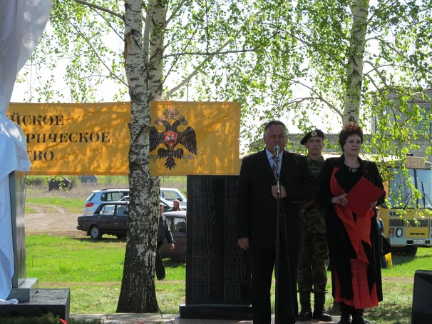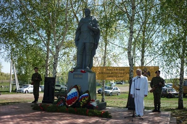 Евгений Шилов, председатель регионального отделения РВИО в Пензенской области, начальник управления культуры и архива Пензенской области, поздравил присутствующих с 70-летием Победы, и рассказал о деятельности Российского военно-исторического общества, по инициативе которого и была изготовлена скульптура.