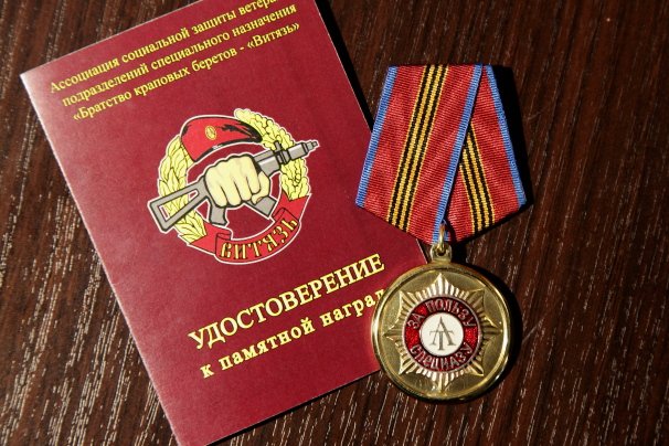 Ассоциация Братство Краповых Беретов «ВИТЯЗЬ» наградила руководителя Департамента по работе с Государственными и общественными организациями РВИО Дениса Садовникова памятной медалью «За пользу спецназу».