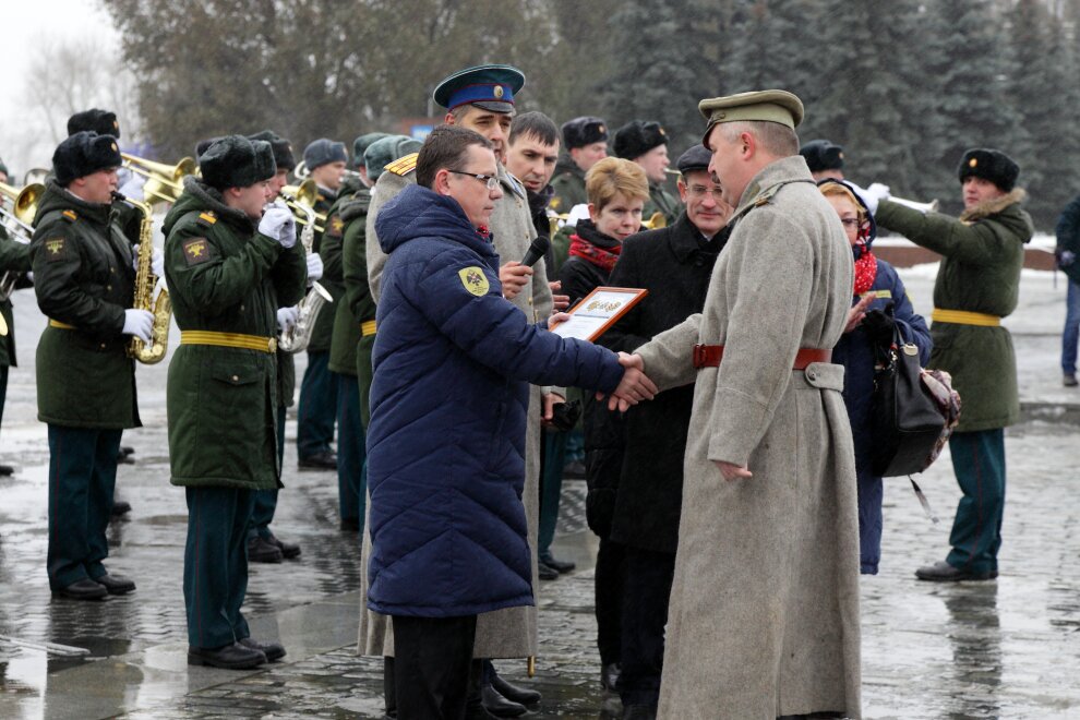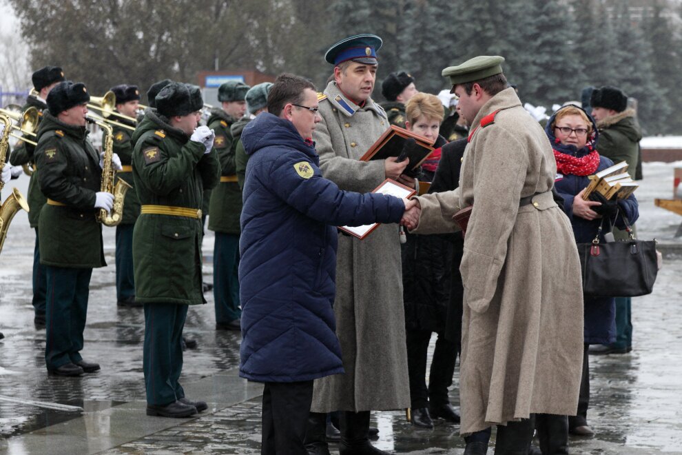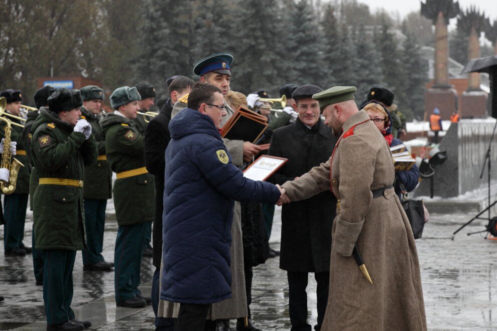 В продолжение официальной части состоялось вручение Почетных грамот РВИО участникам военно-исторического фестиваля «Гумбинненское сражение», посвященного Первой мировой войне. Памятные мероприятия прошли сегодня в городах: Тула, Липецк, Оренбург, Псков, Саранск, Калининград.