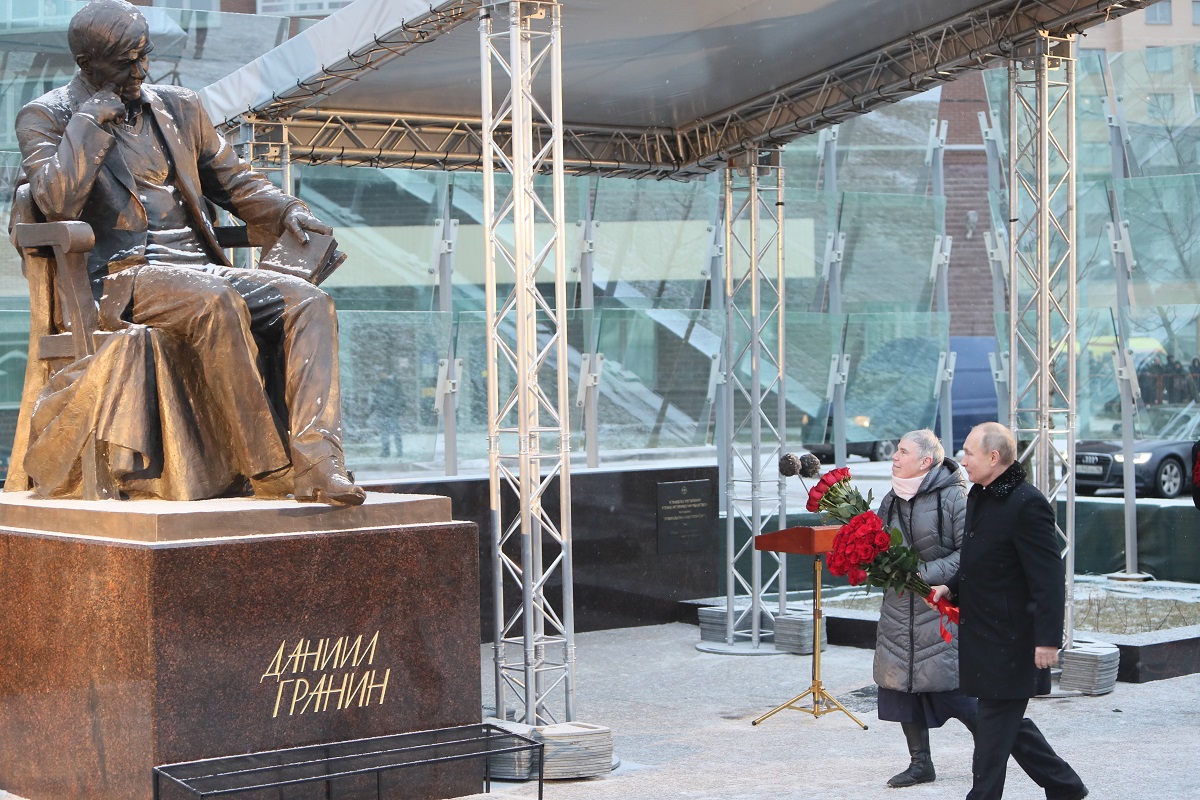 Сегодня Президент Российской Федерации Владимир Путин принял участие в церемонии открытия памятника писателю и общественному деятелю Даниилу Гранину.
