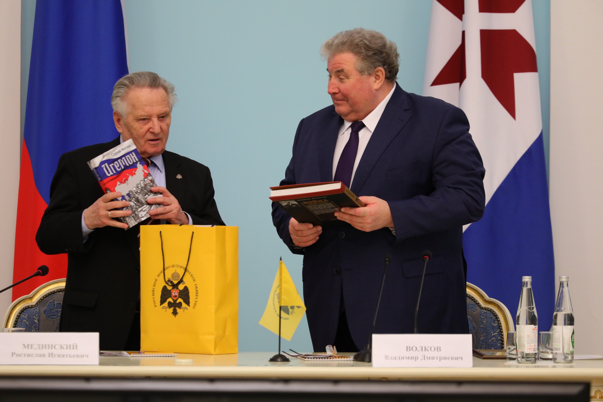 - Очень важно, что Попечительский Совет дал согласие возглавить Глава Республики Владимир Дмитриевич Волков. Многолетний опыт нашей работы подтверждает, что при умелом управлении Попечительский Совет регионального отделения способен поднять на качественно новый уровень его деятельность, прежде всего, в сфере патриотического воспитания, создания культурной среды в регионе, - сказал в своем выступлении Советник Председателя РВИО Ростислав Мединский.