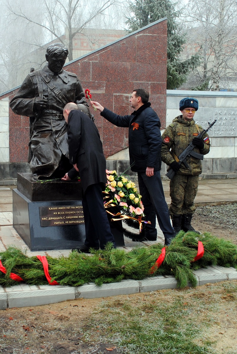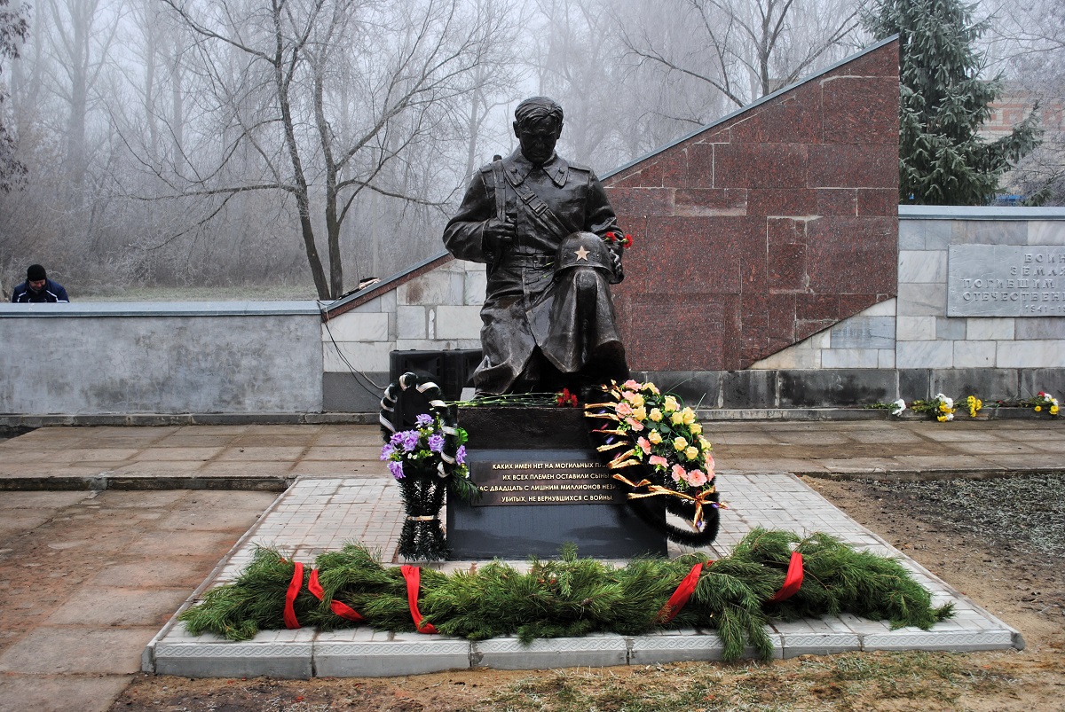 Мемориал в виде фигуры коленопреклоненного солдата создан в одной из московских мастерских скульпторами Денисом Стритовичем и Тимуром Юрченко. Автором проекта выступил Советник Председателя Российского военно-исторического общества Ростислав Мединский.