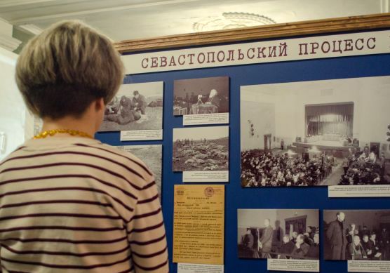 Место для выставки, организованной РВИО, выбрано не случайно – именно в Доме офицеров флота с 12 по 23 ноября 1947 года прошёл Севастопольский процесс, во время которого были осуждены 12 нацистов, виновных в массовых убийствах севастопольцев и крымчан.