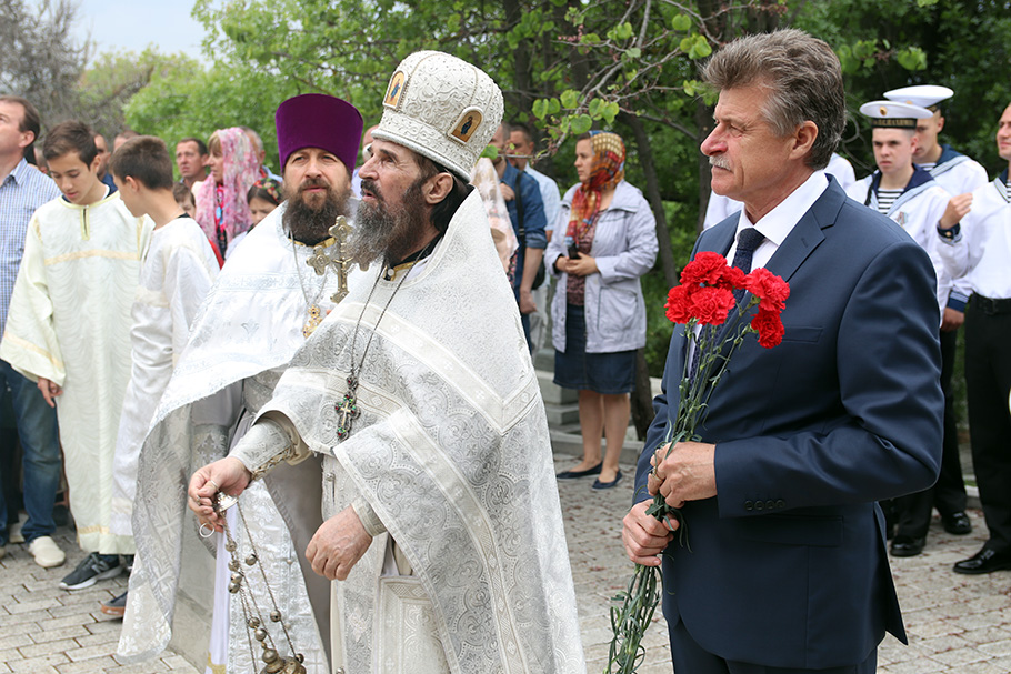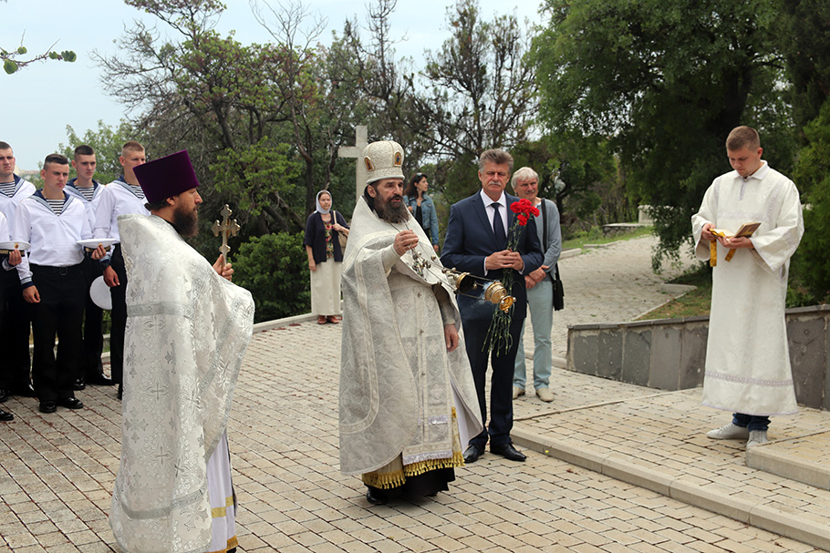 Памятные мероприятия начались с поминальной службы и возложения цветов к месту захоронения Эдуарда Тотлебена на Братском кладбище. В церемонии, которую провёл настоятель Свято-Никольского храма протоиерей о. Георгий (Поляков) приняли участие директор Государственного музея героической обороны и освобождения Севастополя Николай Мусиенко, активисты регионального отделения Российского военно-исторического общества, курсанты ЧВВМУ им. П.С. Нахимова, представители общественности, прихожане.