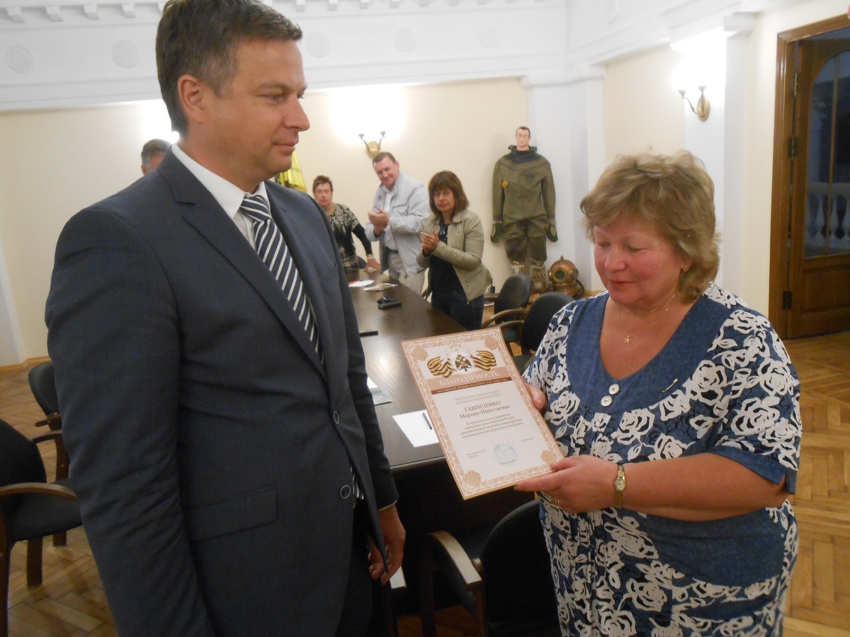 На совещании, посвященном промежуточному подведению итогов севастопольской экспедиции, Председатель РОО СОПО «Долг» Марина Гавриленко награждена благодарностью Российского военно-исторического общества. Награду вручил руководитель департамента поисковой и реконструкторской работы РВИО Александр Кудряшов.