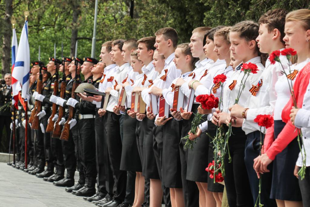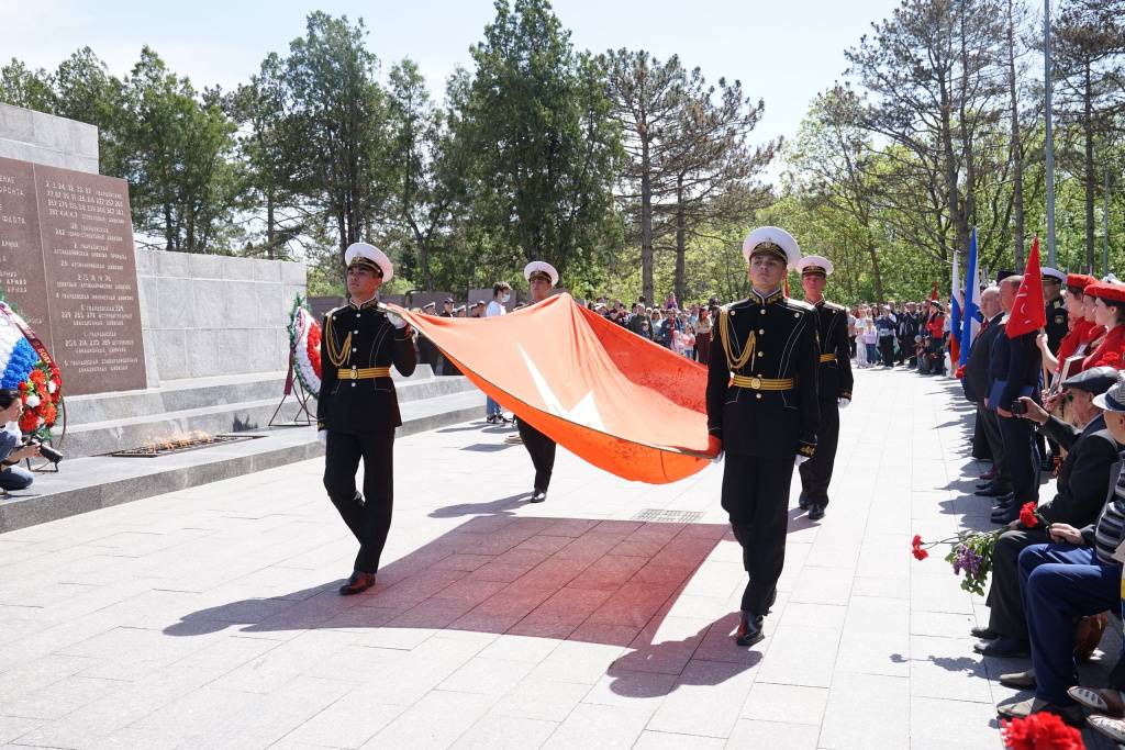 11:00–12:00 Митинг памяти, торжественная церемония выноса боевых знамен и военно-морских флагов у Вечного огня и Обелиска Славы воинам –освободителям.
