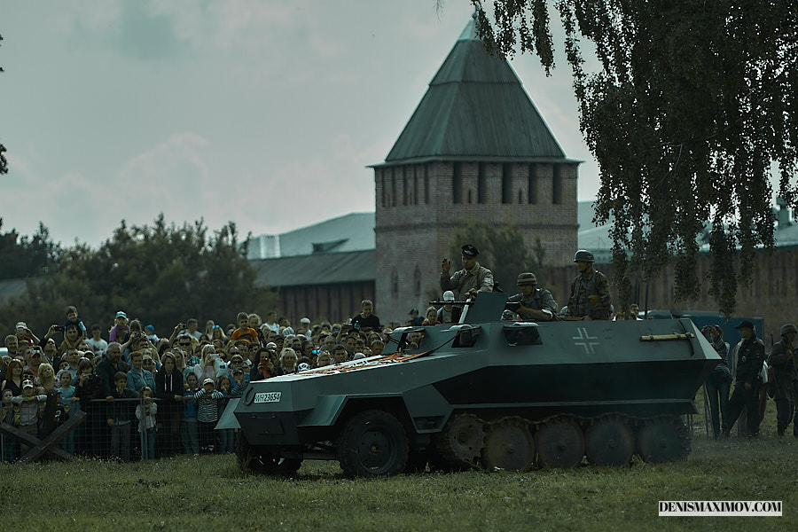 Торжественное открытие фестиваля, посвященного славным подвигам прошлых лет, началось с возложения цветов у Вечного Огня. Здесь реконструкторы отдали дань памяти героическим предкам. После этого у башни Громовой прошли дебютные показы короткометражного фильма «Броневик» и киноленты Кима Дружинина «Танки».