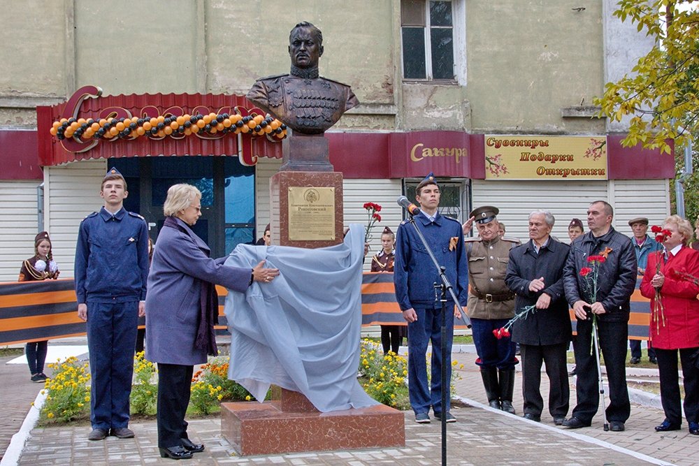 Сегодня в городе Ярцево (Смоленская область) на улице Советская был торжественно открыт бюст Дважды Герою Советского Союза, Маршалу Советского Союза Константину Рокоссовскому. Мероприятие было приурочено к 75-летию Смоленского сражения, 73-й годовщине освобождения Смоленщины от фашистских захватчиков и к предстоящему 120-летию со Дня рождения великого полководца (21 декабря).