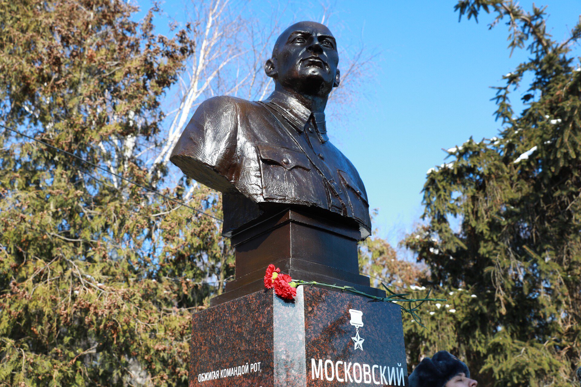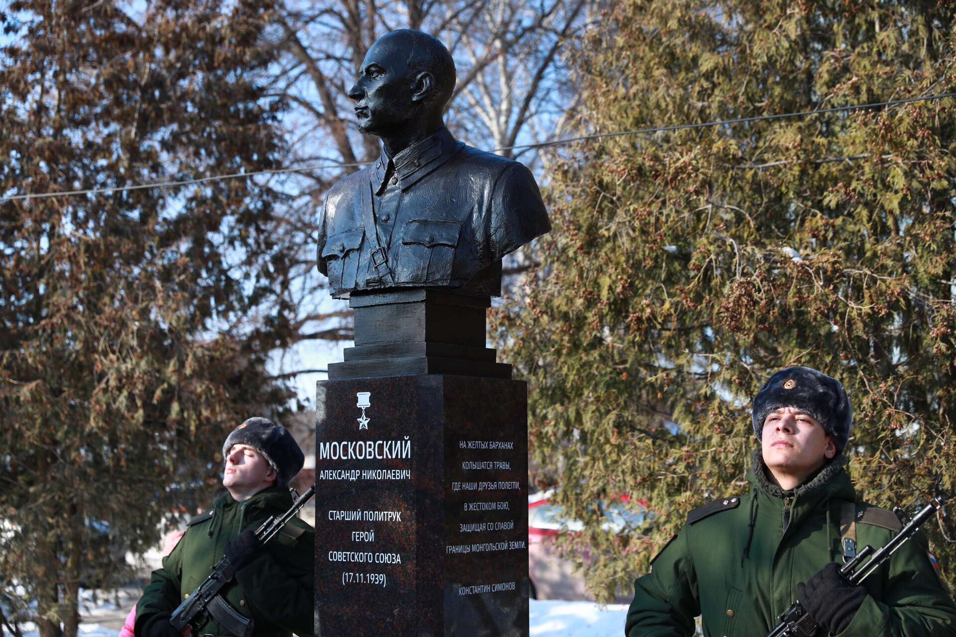 Еще один бюст - Герою Советского Союза, старшему политруку Александру Московскому установлен РВИО на улице Комиссара Московского. Уроженец села Подоскляй Рассказовского района, Александр Московский стал первым из жителей Тамбовской земли, получивших звание Героя Советского Союза. Этого высокого звания он был посмертно удостоен за героизм, проявленный при выполнении воинского и интернационального долга в боях на реке Халхин-Гол. В ночном бою 28 августа 1939 года он лично возглавил контратаку и погиб смертью храбрых. Пройдя путь от комсомольского работника до комиссара курсантского батальона, он всегда находился среди своих бойцов на передовой.