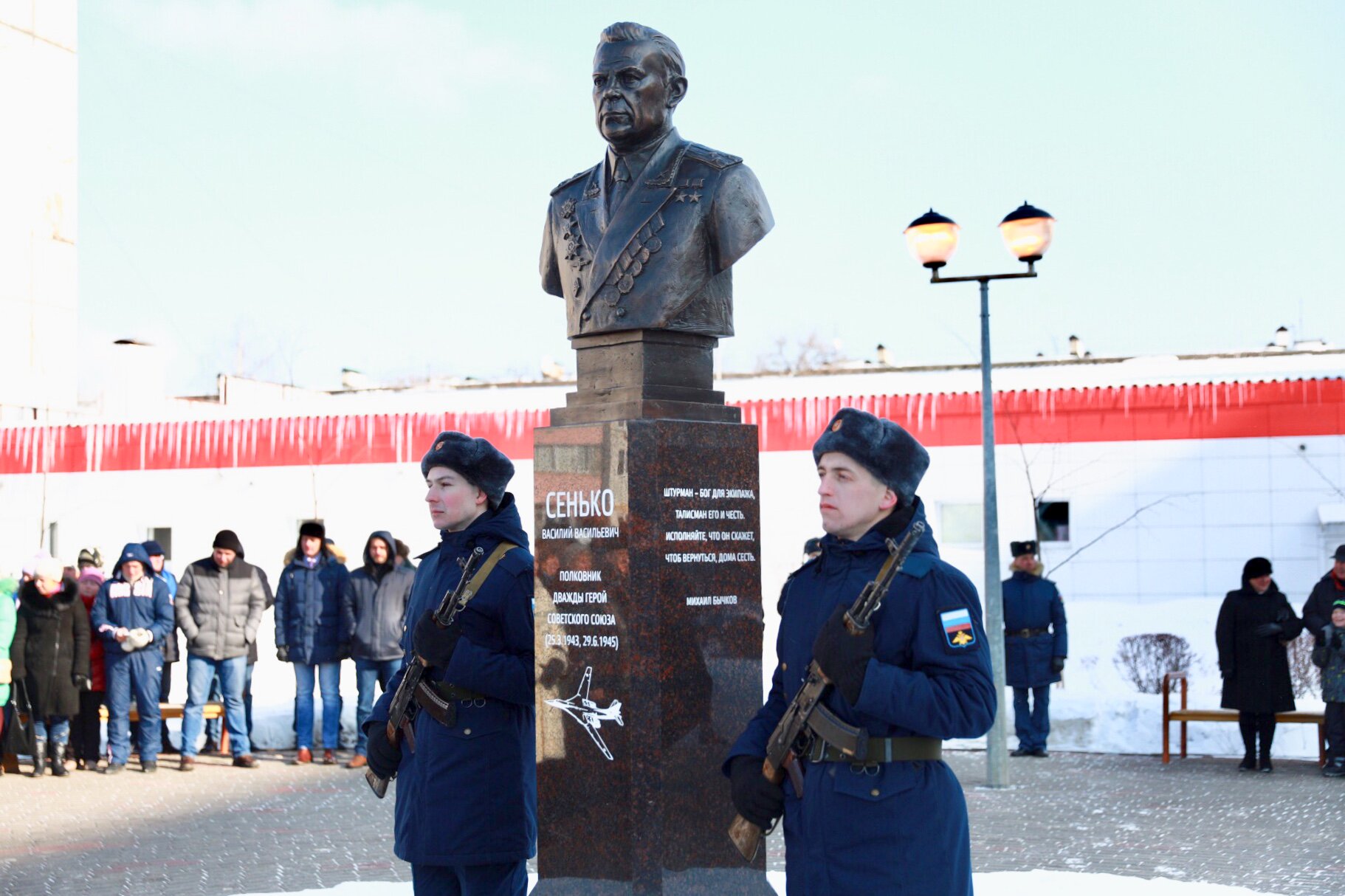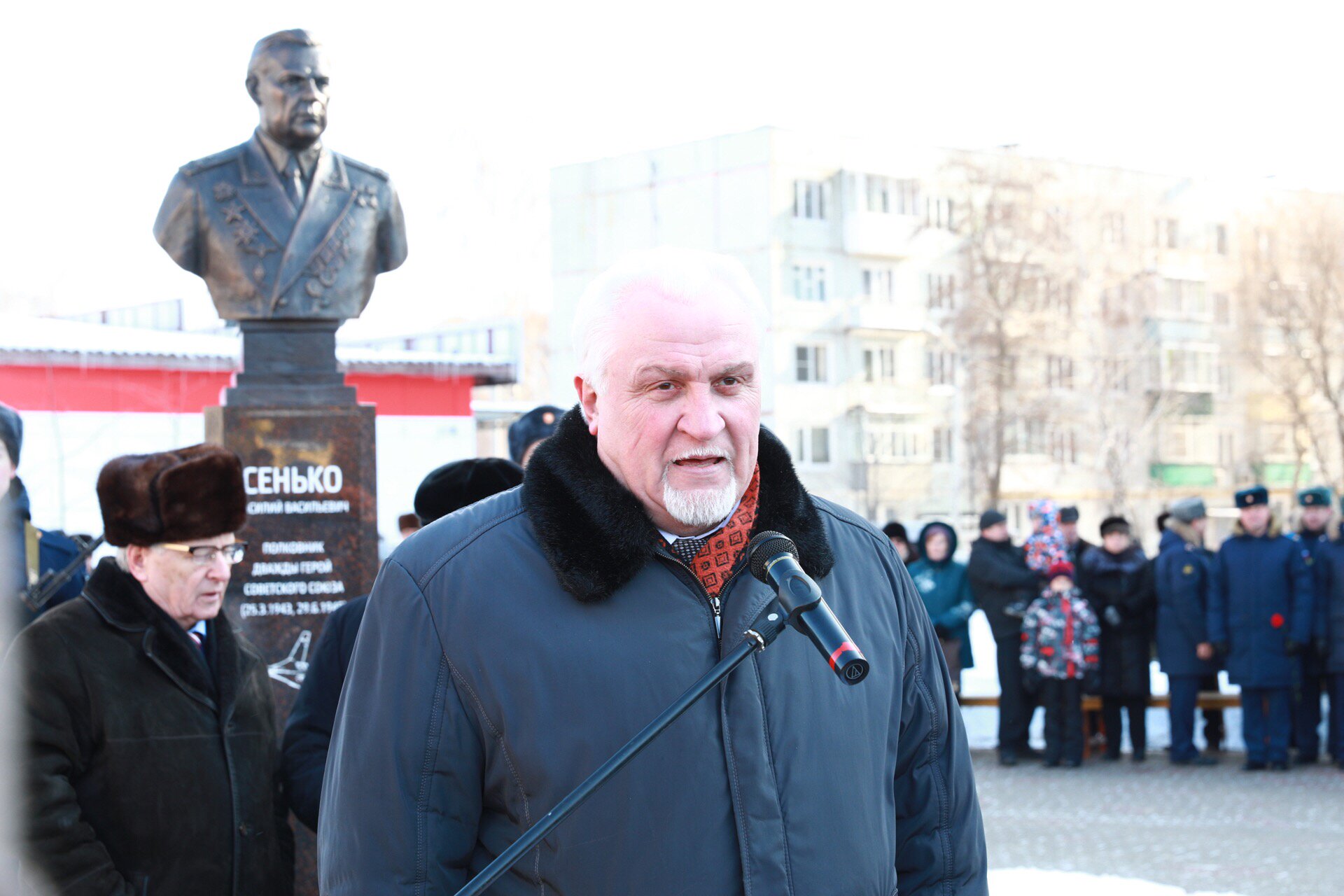 В начале дня в областном центре состоялась торжественная церемония открытия памятника дважды Герою Советского Союза, летчику-штурману Василию Сенько. Монумент установлен Российским военно-историческим обществом в сквере, который носит имя Героя.