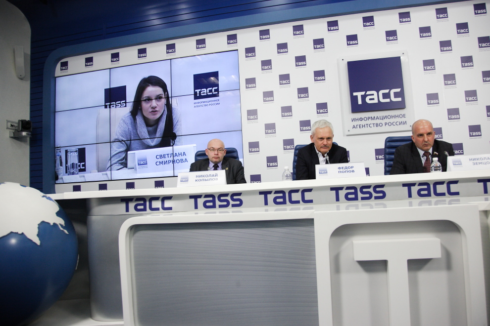 Из студии пресс-центра ТАСС в Санкт-Петербурге к конференции присоединились писатель, соавтор сценария фильма "Коридор бессмертия" Дмитрий Каралис, актриса, исполнительница главной роли в фильме "Коридор бессмертия" Светлана Смирнова.