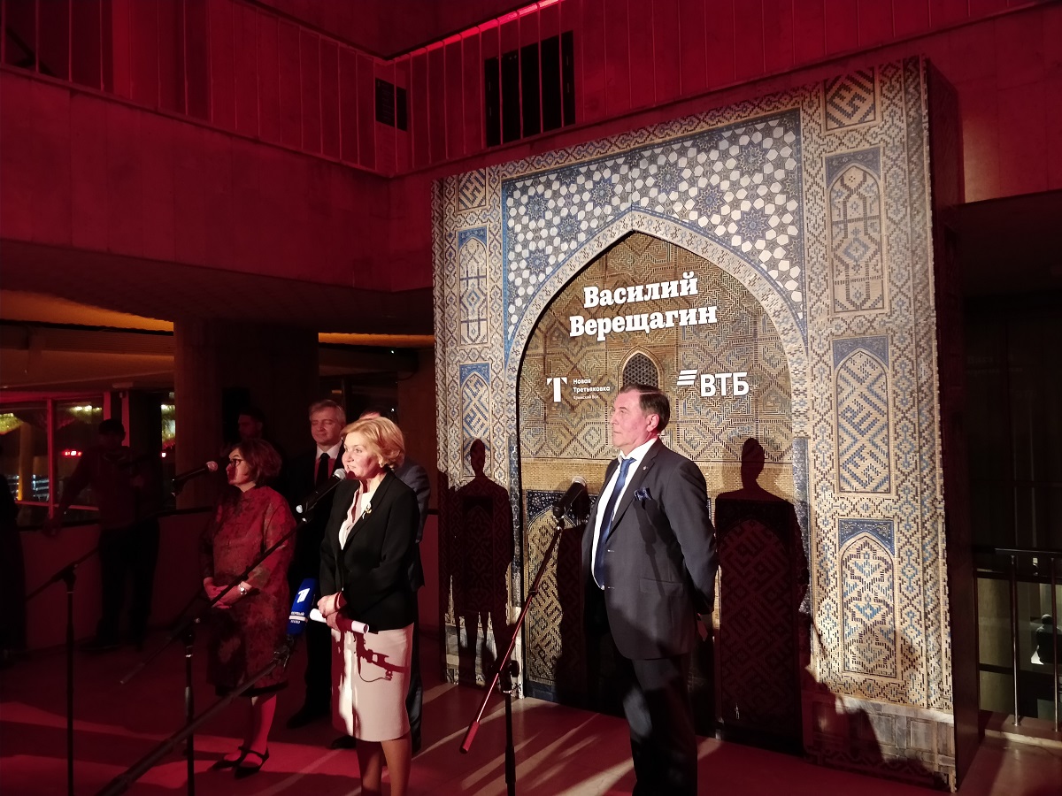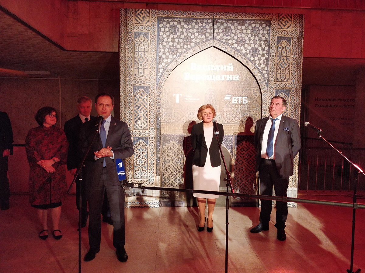 - Я уверен, что эта удивительная выставка, самая большая выставка Верещагина, организованная Третьяковской галереей, станет таким же громадным событием, как выставки Серова, Айвазовского. Желаю вам составить свое мнение об этом удивительнейшем, потрясающем, очень необычном человеке и великом художнике, — заключил Владимир Мединский.