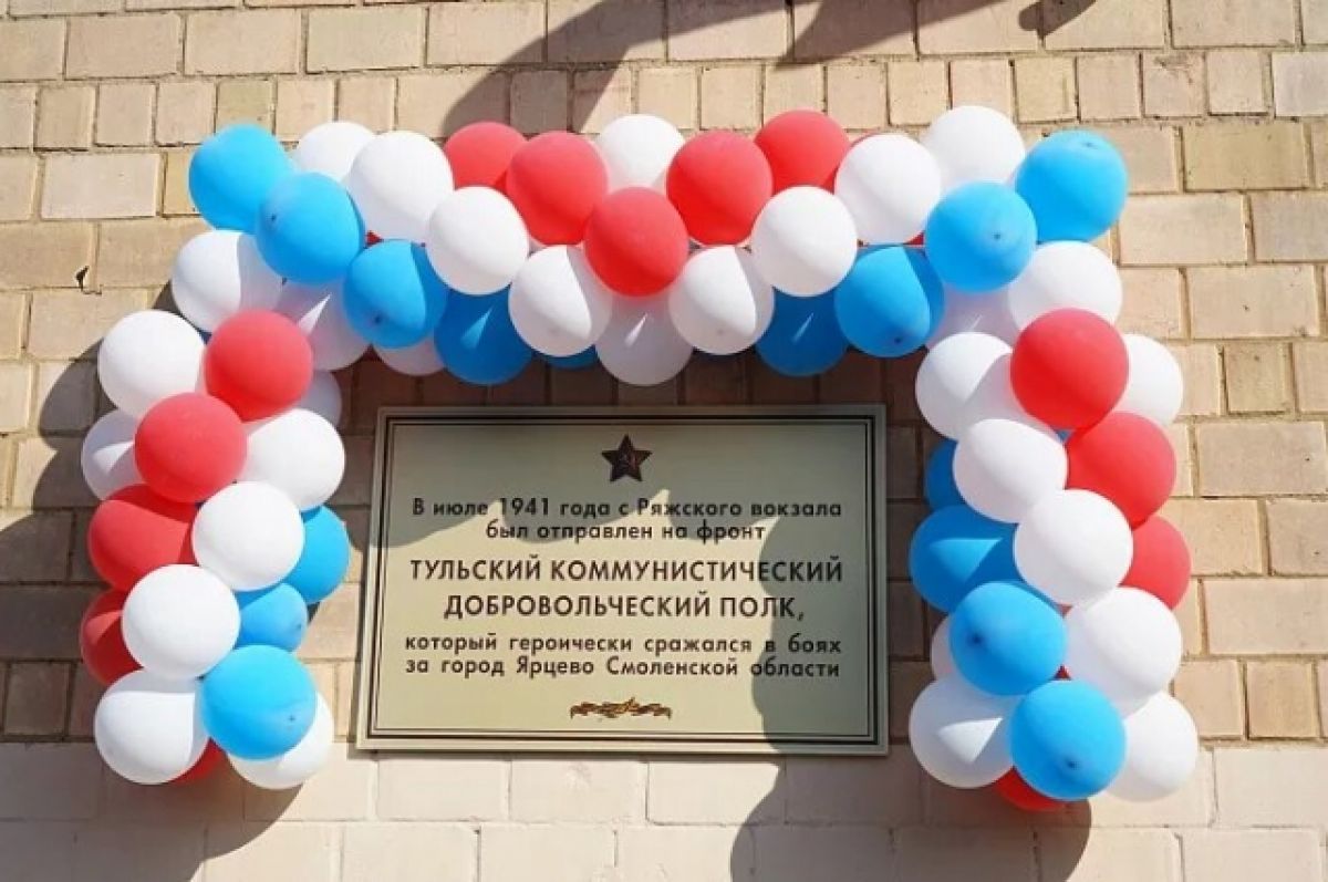 На Ряжском вокзале в Туле состоялась торжественная церемония открытия мемориальной доски, посвященной героическому подвигу бойцов Тульского коммунистического добровольческого полка.