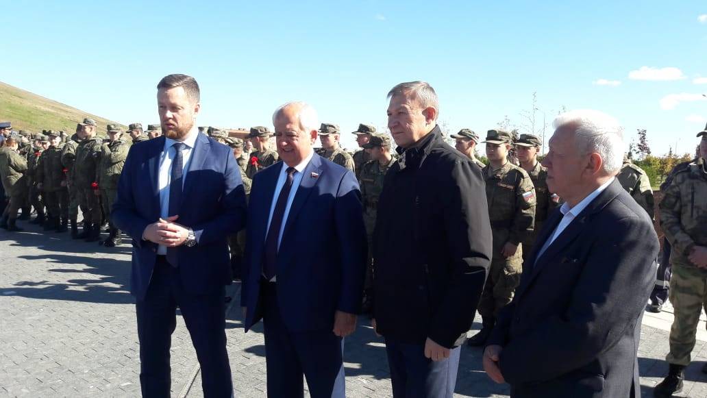 Участники церемонии открытия экспедиции возложили цветы к монументу Советскому солдату и посетили экскурсию по мемориалу и музейному павильону.