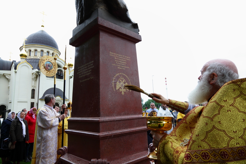 Бюст установлен в рамках республиканского патриотического проекта «Аллея российской славы», который реализуется под патронатом Российского военно-исторического общества (РВИО). На церемонии открытия присутствовали Начальник Главного военно-медицинского управления Министерства обороны Российской Федерации Александр Фисун, Исполнительный директор Российского военно-исторического общества Владислав Кононов, руководитель проекта «Аллея российской славы» Михаил Сердюков, Начальник ФГБУ «3 Центральный военный клинический госпиталь им. А.А. Вишневского» Министерства обороны Российской Федерации Александр Есипов, сотрудники и пациенты госпиталя, представители всех родов войск и священнослужители.Светская часть церемонии началась с гимна России.