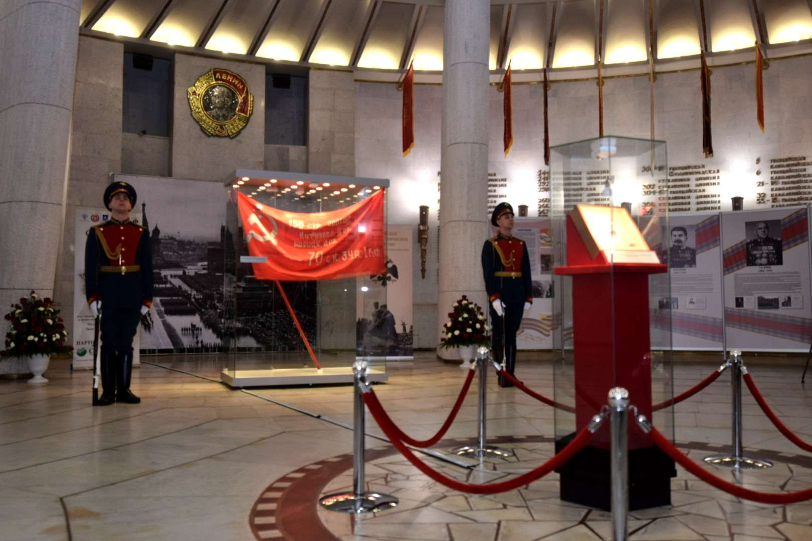 Ее основу составили уникальные экспонаты из коллекции Центрального музея Вооруженных Сил РФ – Знамя Победы и орден «Победа» Маршала Советского Союза Георгия Константиновича Жукова.
