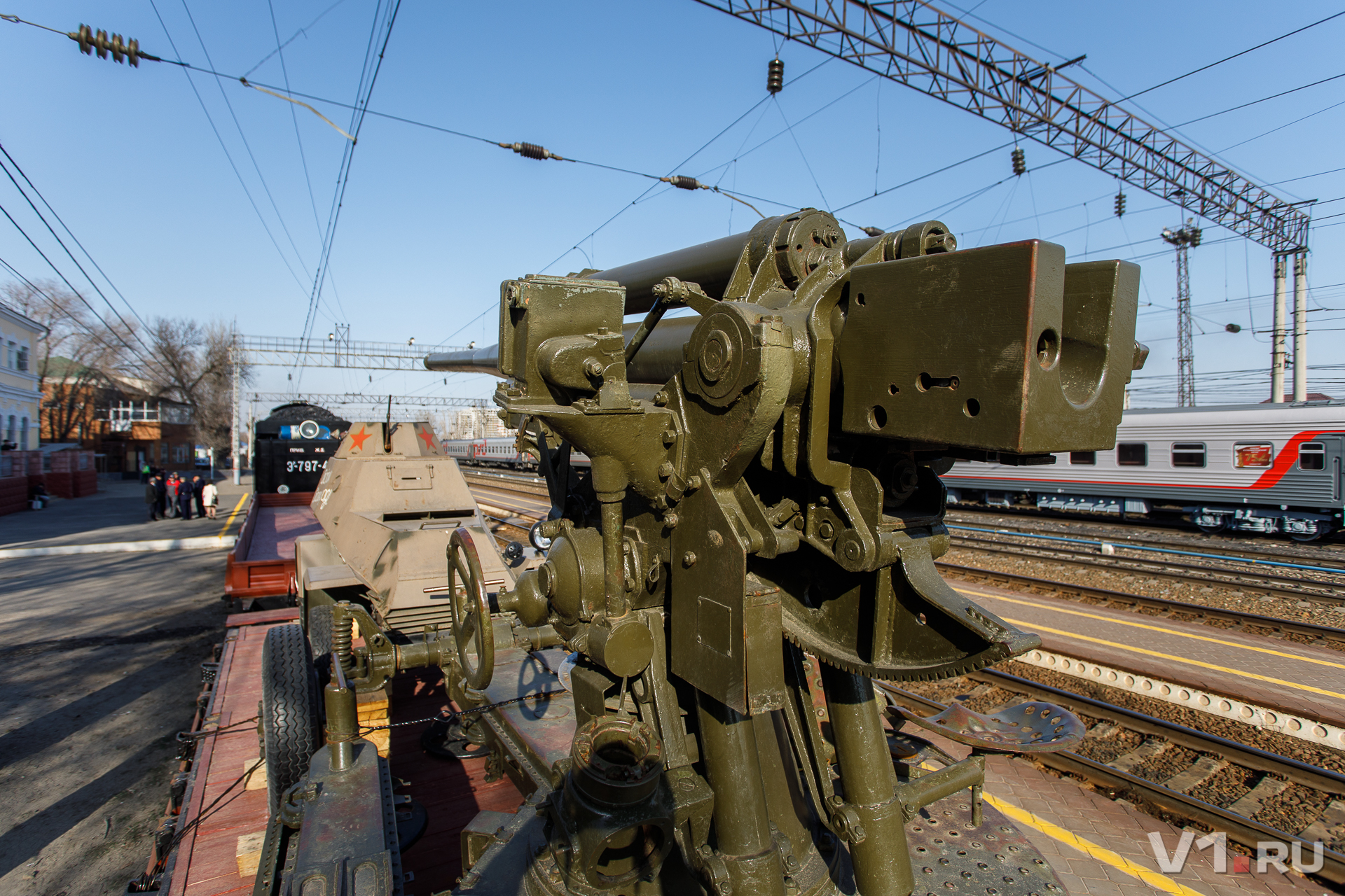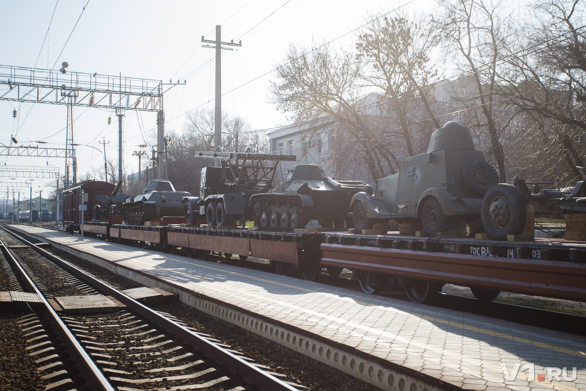 Напомним, что «Воинский эшелон» состоит из действующего паровоза Эр 797-41, штабного вагона и вагона-теплушки. На платформах ретро-поезда разместились: танки Т-34-76 и Т-60, бронеавтомобили БА-64Б и БА-20М, 85-мм зенитная пушка образца 1939 года, легендарный БМ-13 «Катюша», а также гаубицы 122-мм и 152-мм.