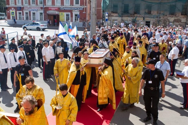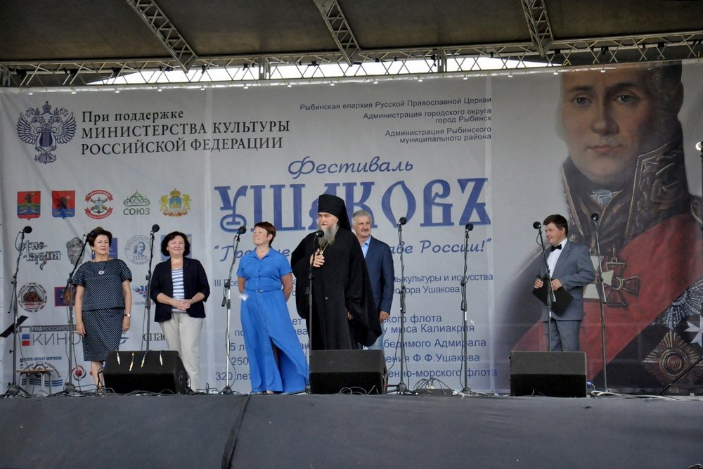 Главное событие Ушаковских дней состоялось 7 августа. В этот день в Рыбинск из Санаксарского монастыря Мордовии прибыл крестный ход с мощами святого праведного воина Феодора Ушакова. На один день в Спасо-Преображенском соборе был представлен воссозданный мундир великого адмирала и ковчег в форме корабля с мощами праведного воина, чтобы поклониться святыне могли все желающие. Начав с малой родины адмирала, кортеж пройдет через девять городов, связанных с именем Феодора Ушакова, к Севастополю, прославленному подвигами флотоводца.