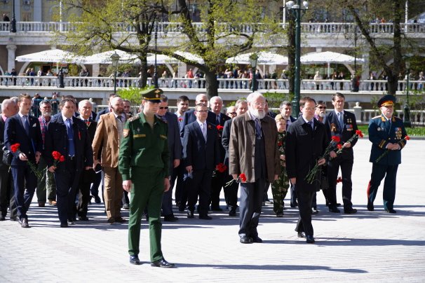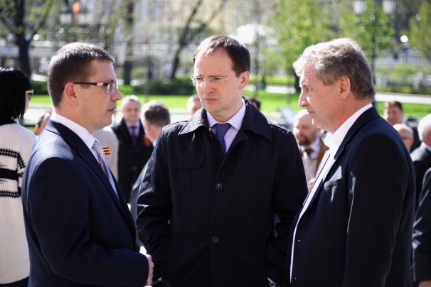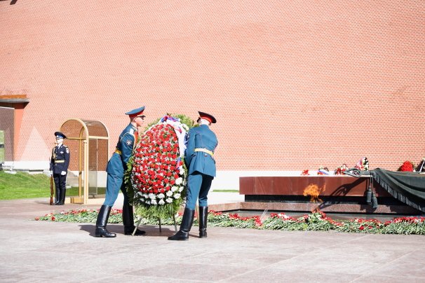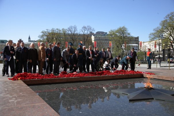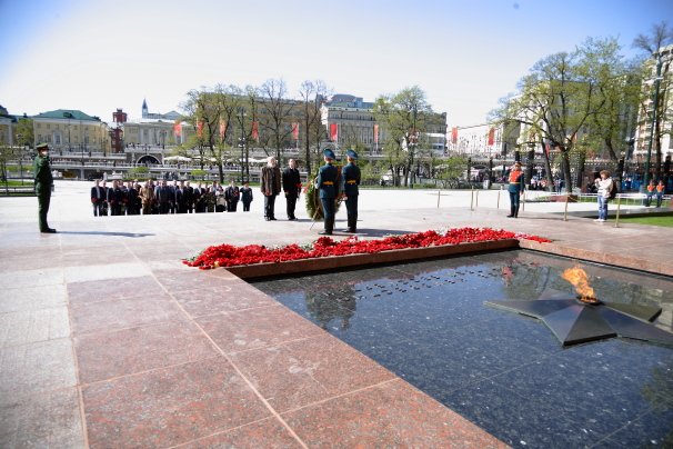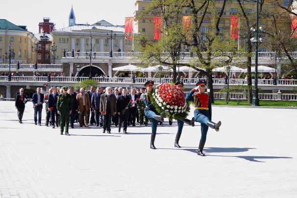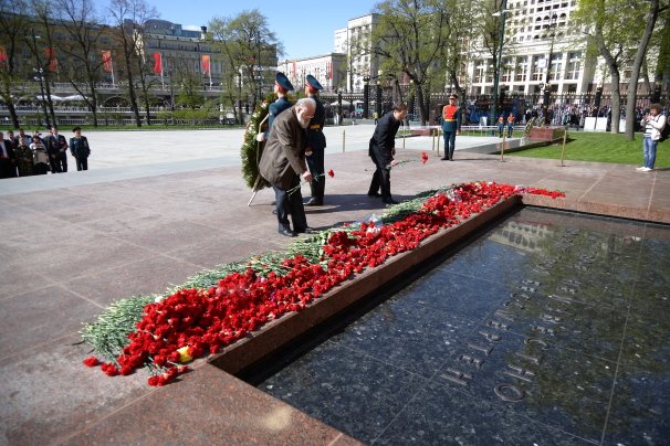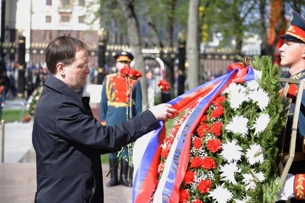 Накануне Дня Победы Председатель Российского военно-исторического общества, Министр культуры Российской Федерации Владимир Мединский возложил цветы к могиле Неизвестного солдата в Александровском саду.