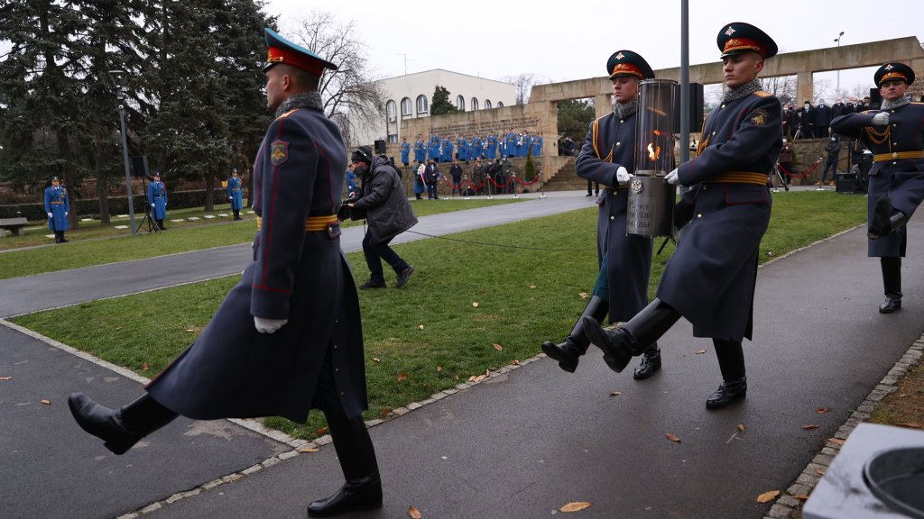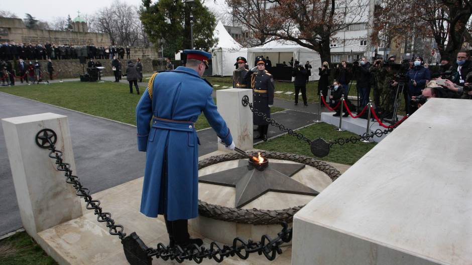 Церемония зажжения Вечного огня, доставленного из России совместной делегацией Российского исторического общества и Российского военно-исторического общества во главе с Помощником Президента РФ, Председателем Российского военно-исторического общества Владимиром Мединским, состоялась во вторник, 15 декабря, на Мемориальном кладбище освободителей Белграда. В церемонии приняли участие Министр иностранных дел РФ Сергей Лавров и Президент Сербии Александр Вучич.
