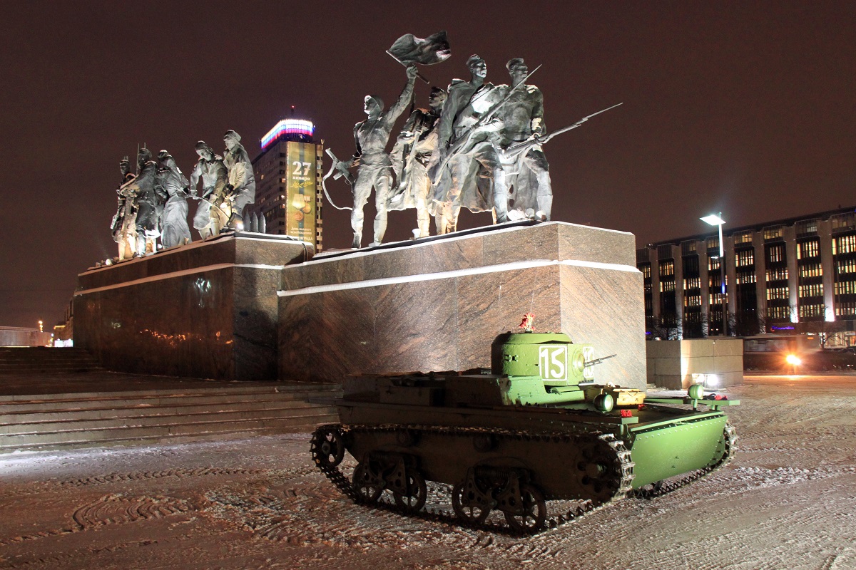 У монумента жители и гости города на Неве смогли увидеть два боевых танка Великой Отечественной войны Т-38. Эти машины когда-то защищали подступы к Ленинграду от немецких войск, а теперь отреставрированы и являются экспонатами музея «Битва за Ленинград им. З.Г. Колобанова» во Всеволожске.