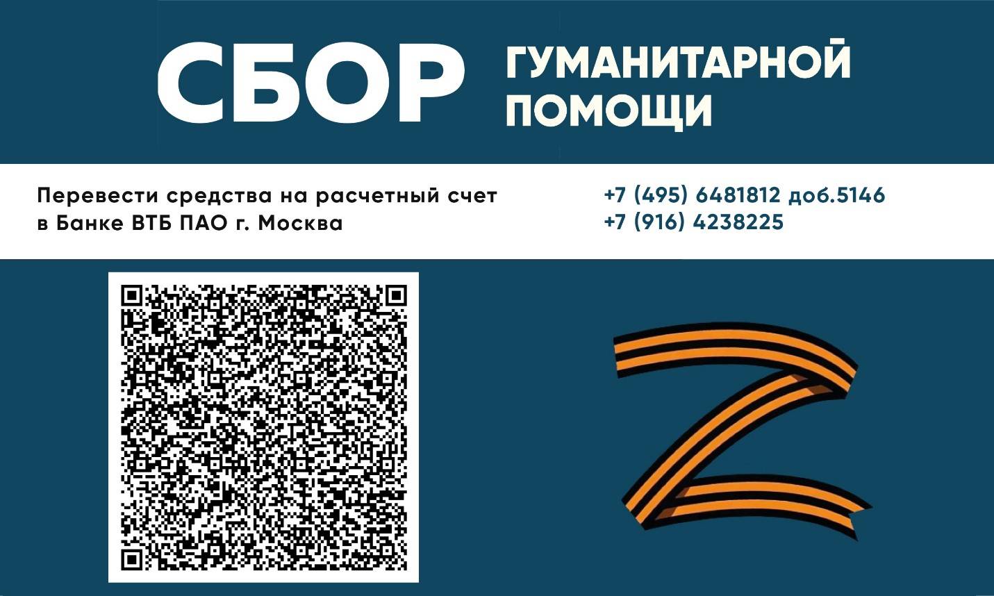 В связи с этим напоминаем, что для закупки необходимой гуманитарной помощи можно перевести средства на расчетный счет в Банке ВТБ ПАО Г. Москва