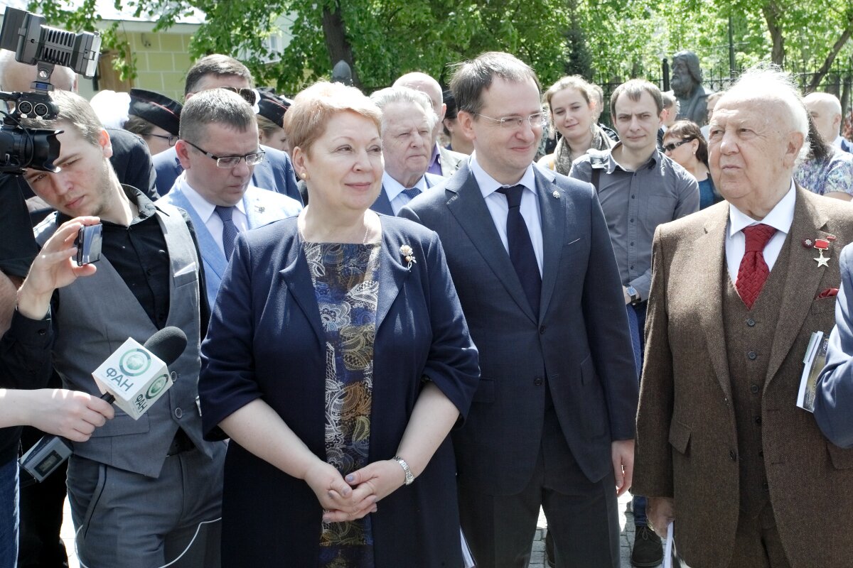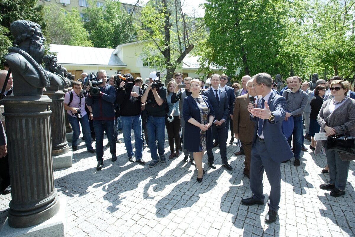 Сегодня в центре Москвы состоялось торжественное открытие «Аллеи Правителей». В церемонии приняли участие Министр культуры РФ, Председатель РВИО Владимир Мединский и Министр образования и науки РФ Ольга Васильева. «Аллея правителей» создана Российским военно-историческим обществом недалеко от Музея военной формы одежды» РВИО в Петроверигском переулке.