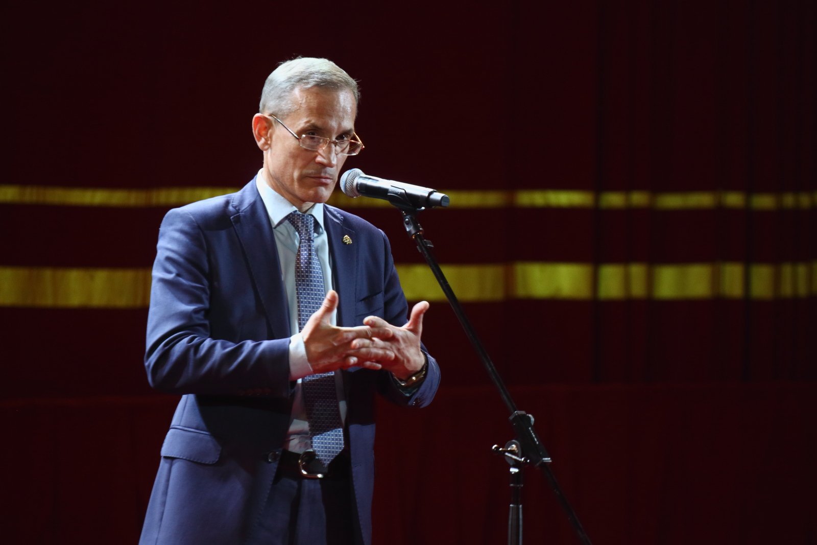 После официальной части, с мини-лекцией, посвященной годовщине окончания Второй мировой войны, выступил научный директор Российского военно-исторического общества Михаил Мягков.