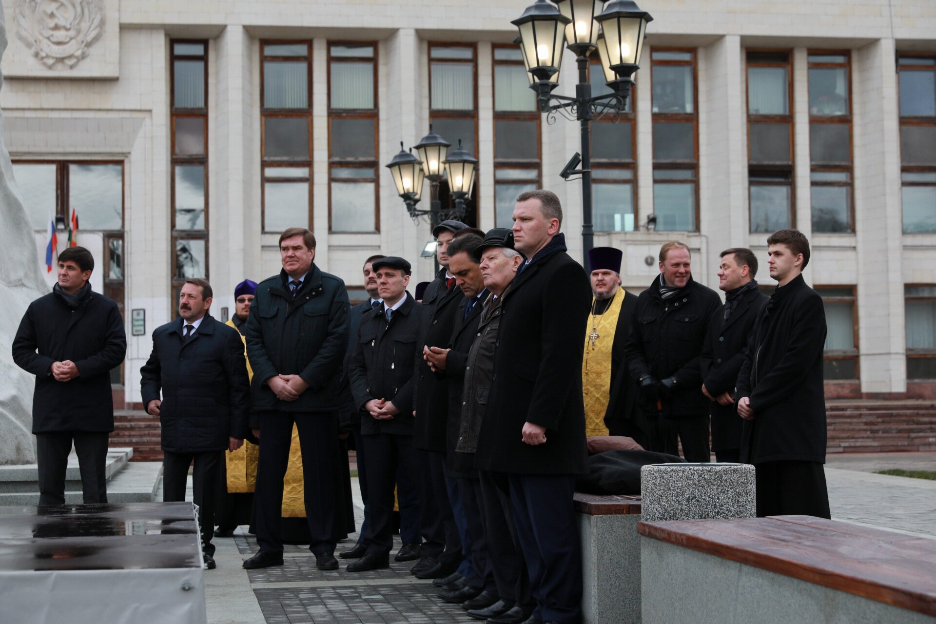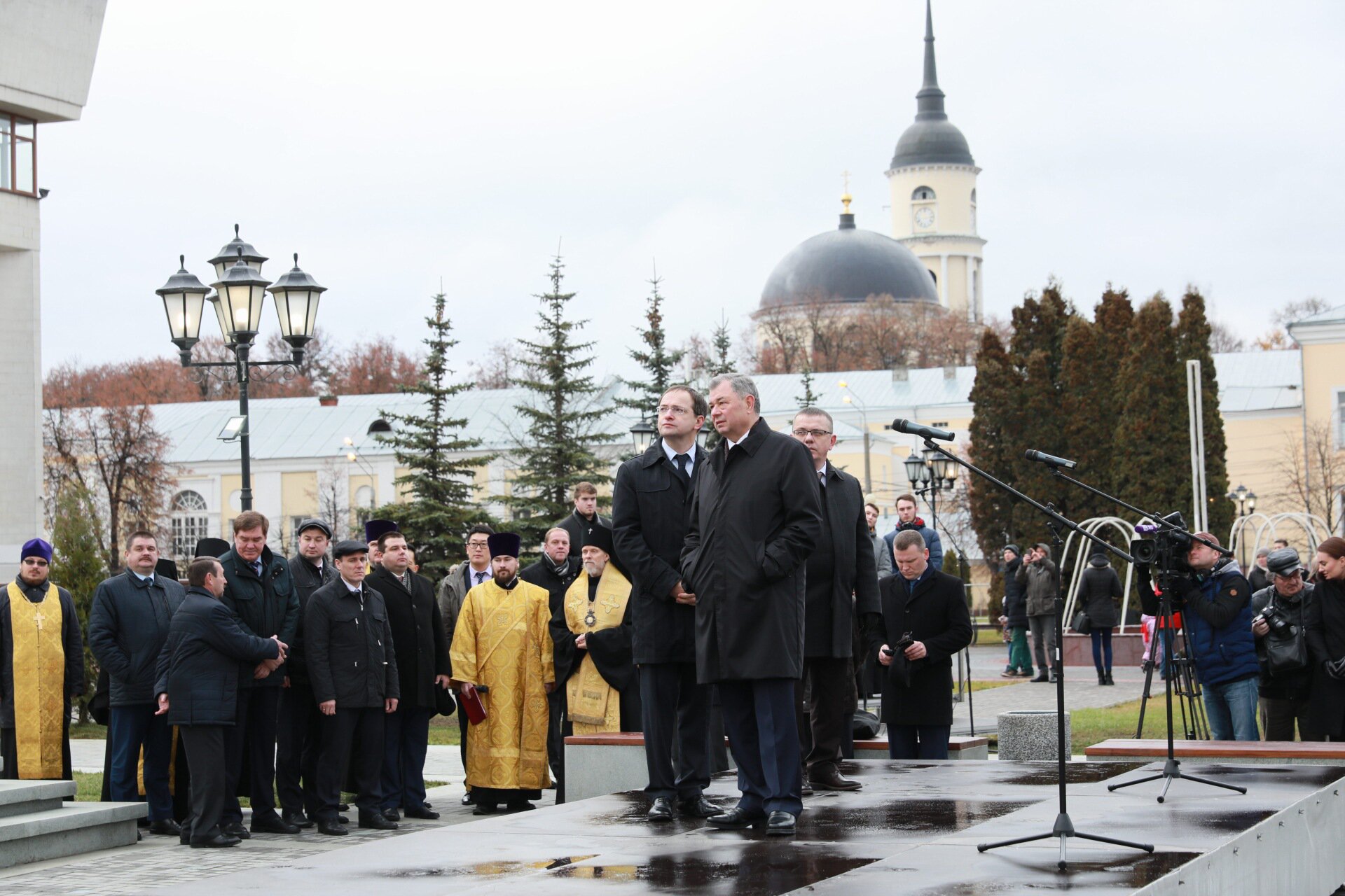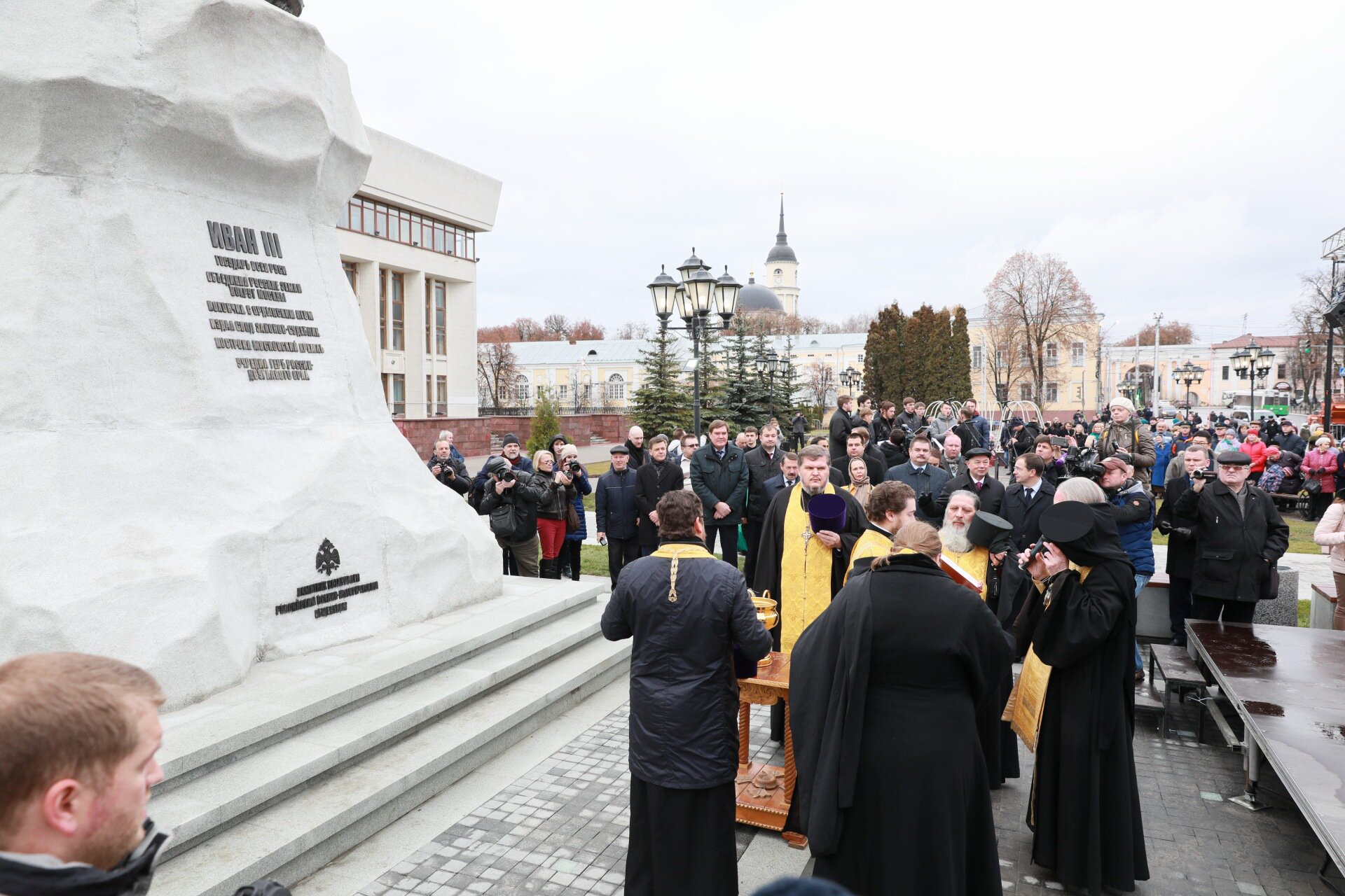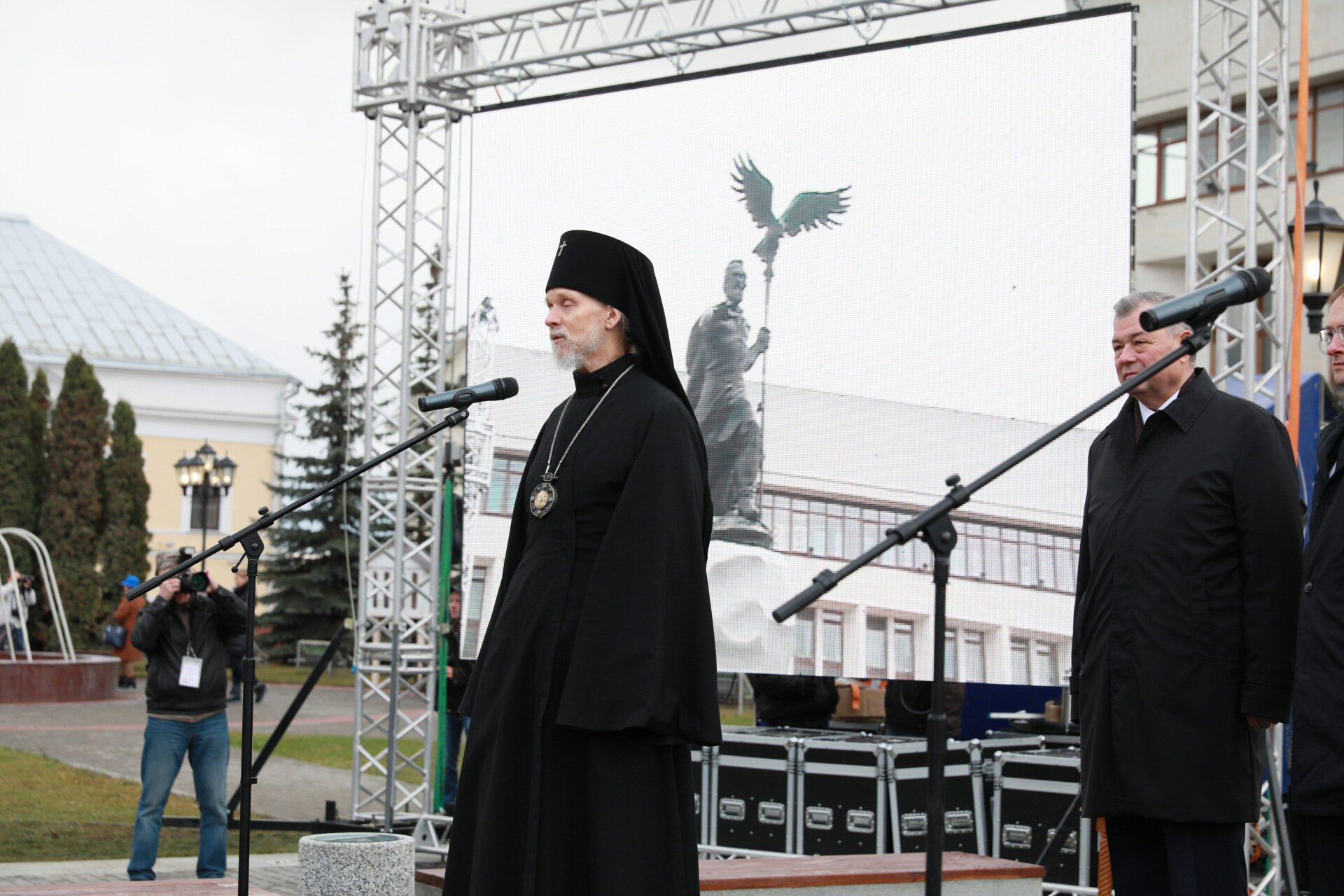 Также в церемонии открытия принял участие губернатор Калужской области Анатолий Артамонов. Видеообращение передал председатель Творческого совета РВИО Андрей Кончаловский. Чин освящения памятника совершил архиепископ Песоченский и Юхновский Максимилиан.