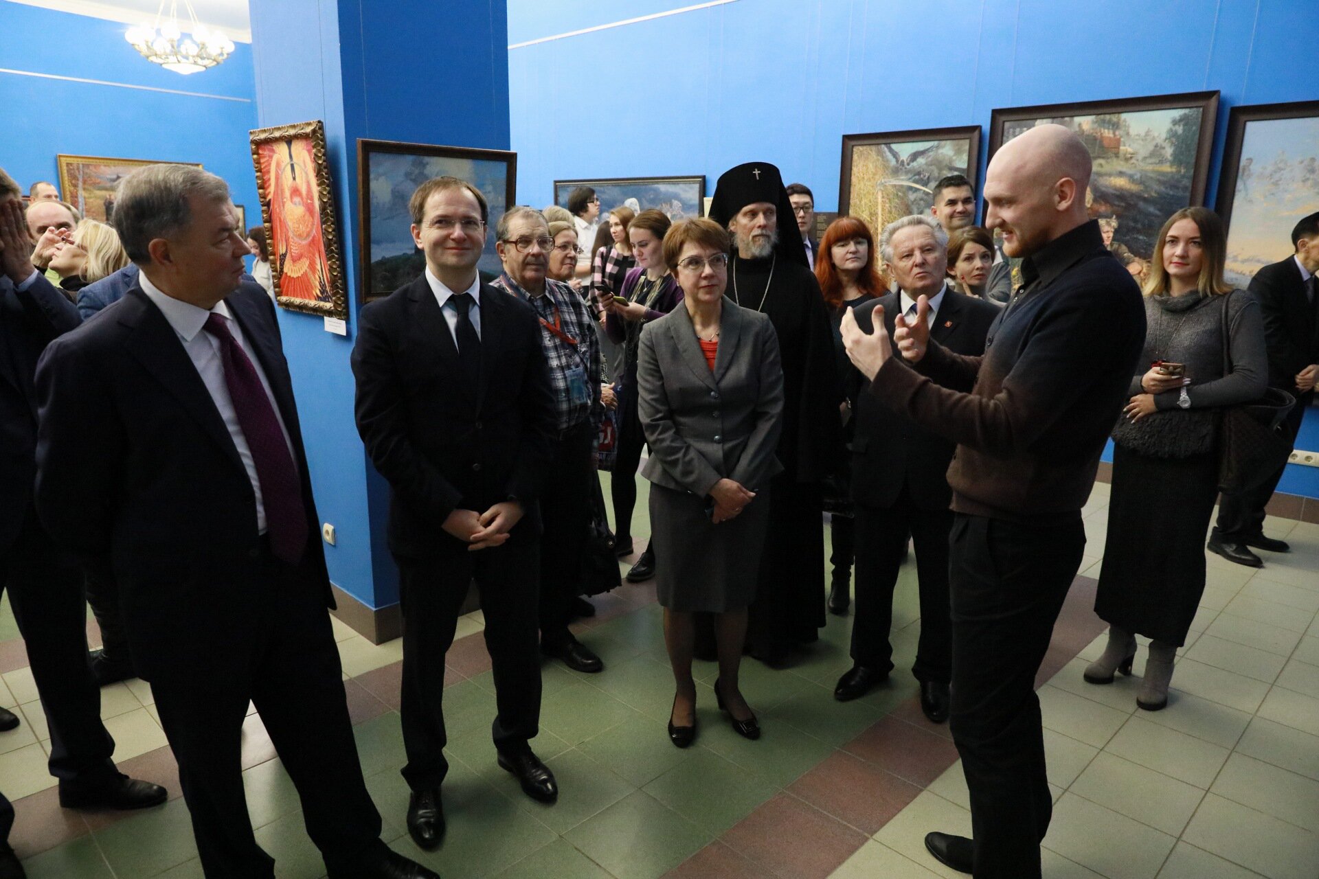 Также сегодня Владимир Мединский посетил персональную выставку художника Владимира Киреева «Литургия верных» в Калужском музее изобразительных искусств. Затем выступил с лекцией об Иване III в Инновационном культурном центре.