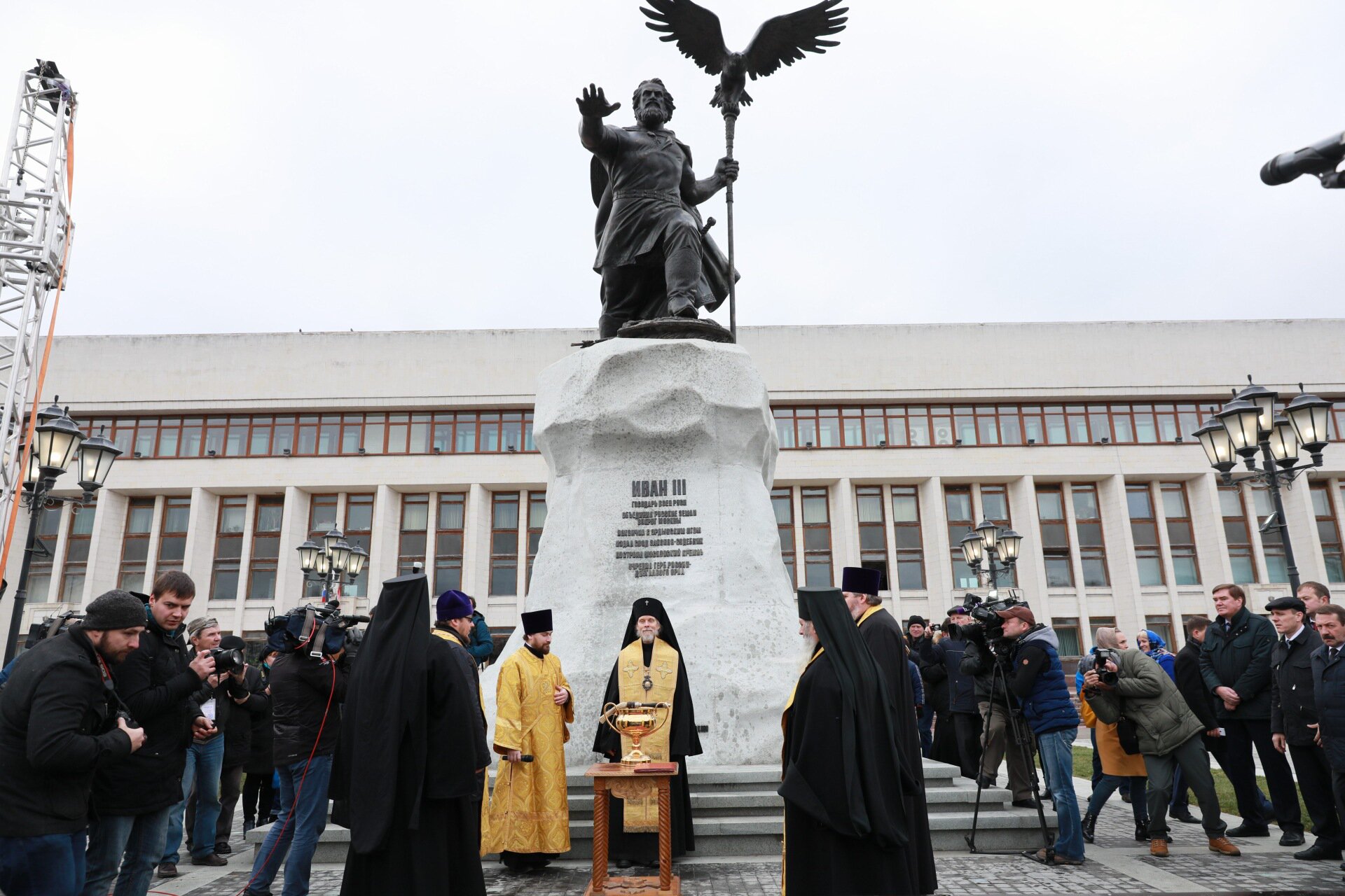 В России это уже третий по счету памятник Ивану III. Его бюст есть на Аллее правителей в Москве, также в июле этого года монумент знаменитому правителю установили на территории Владимирского скита Калужской Свято-Тихоновской пустыни.