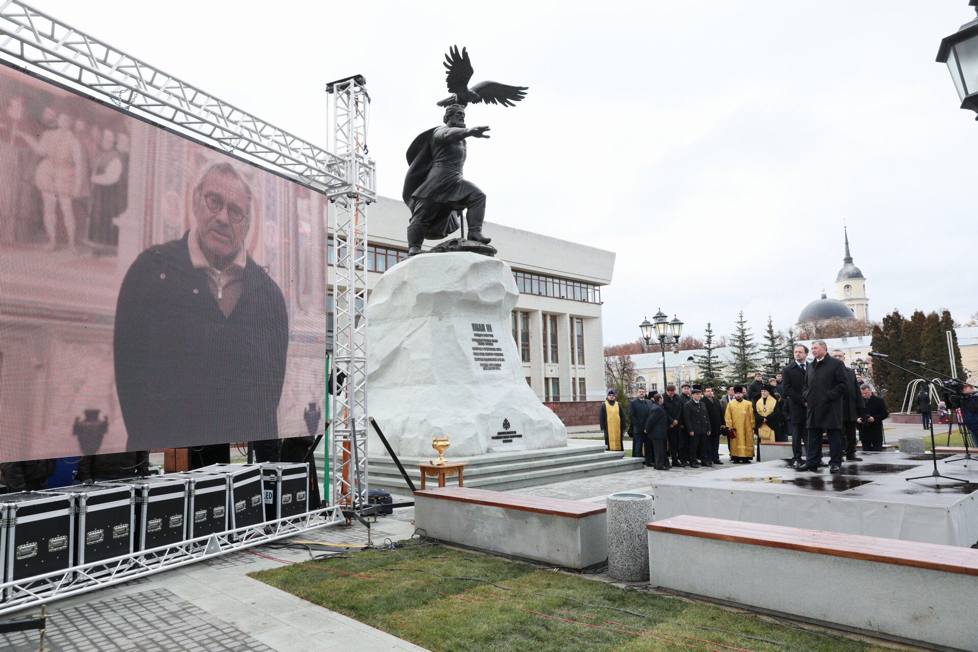 Автор художественной идеи памятника - Андрей Кончаловский, воплотил образ правителя в бронзе скульптор Андрей Коробцов. Интересная деталь композиции: орел с распростёртыми крыльями, символизирует государственность.