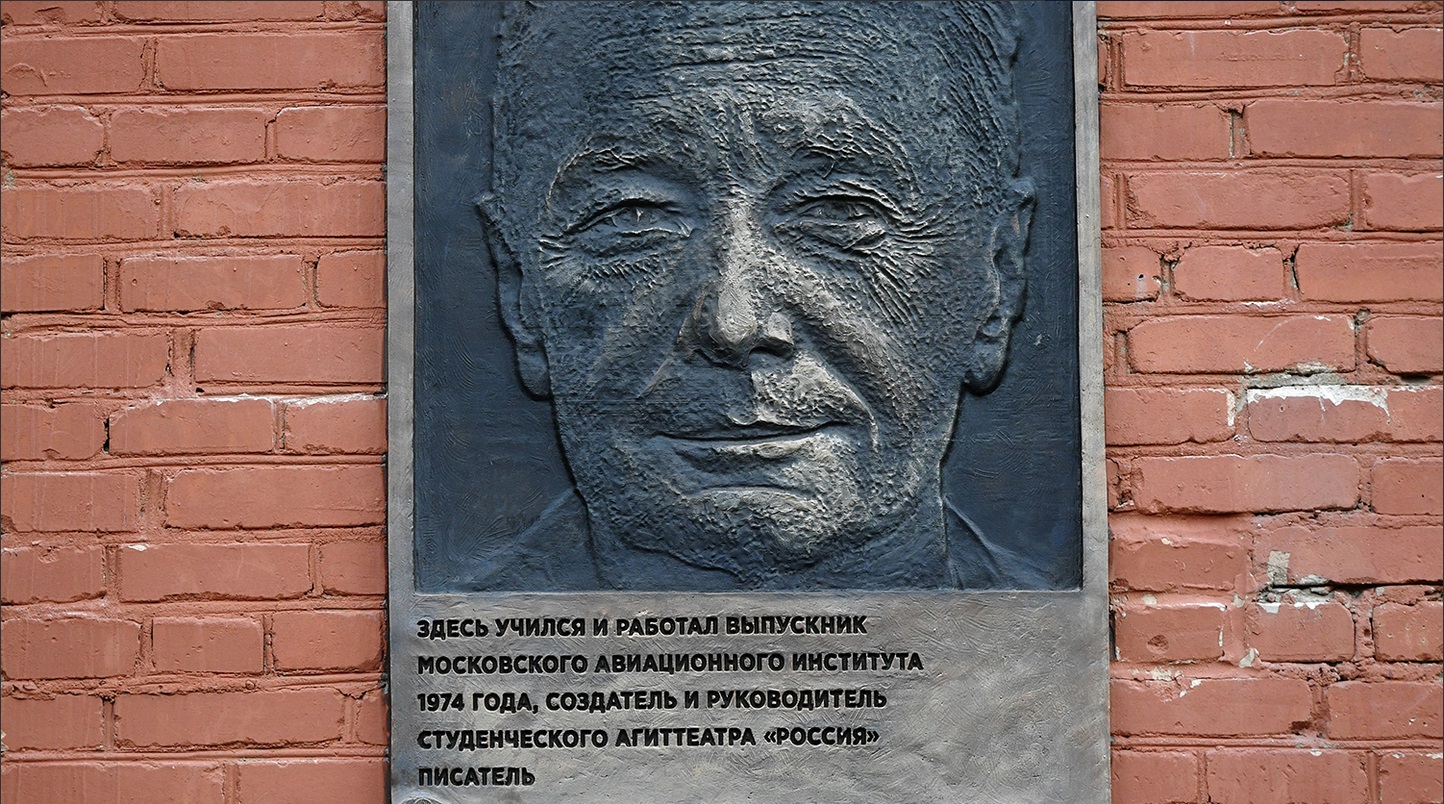 Доска установлена Российским военно-историческим обществом на здании №2 «Авиационные, ракетные двигатели и энергетические установки», где раньше располагался факультет «Двигатели летательных аппаратов», который окончил писатель. Авторами мемориальной доски стали скульпторы Денис Стритович и Тимур Юрченко.