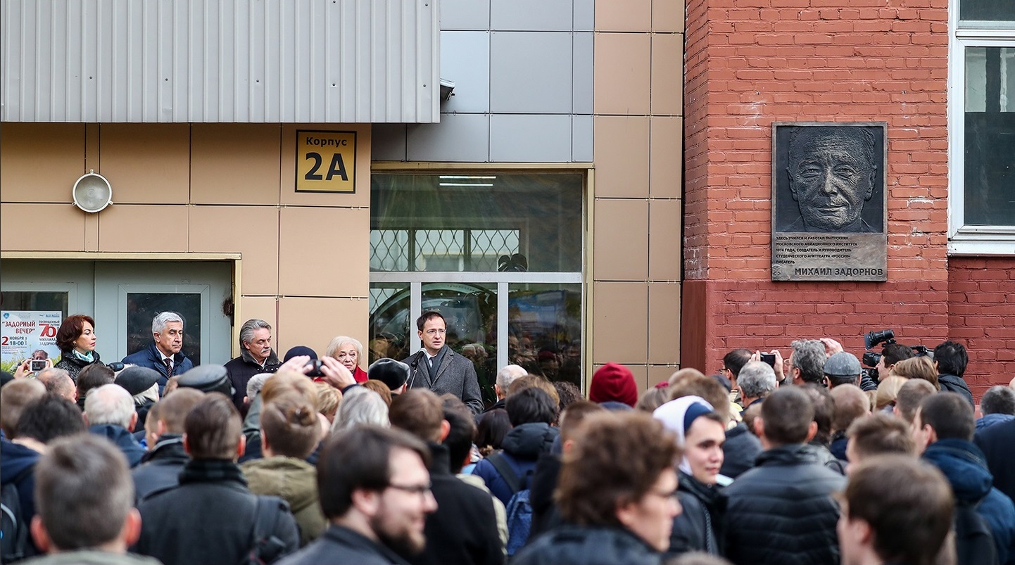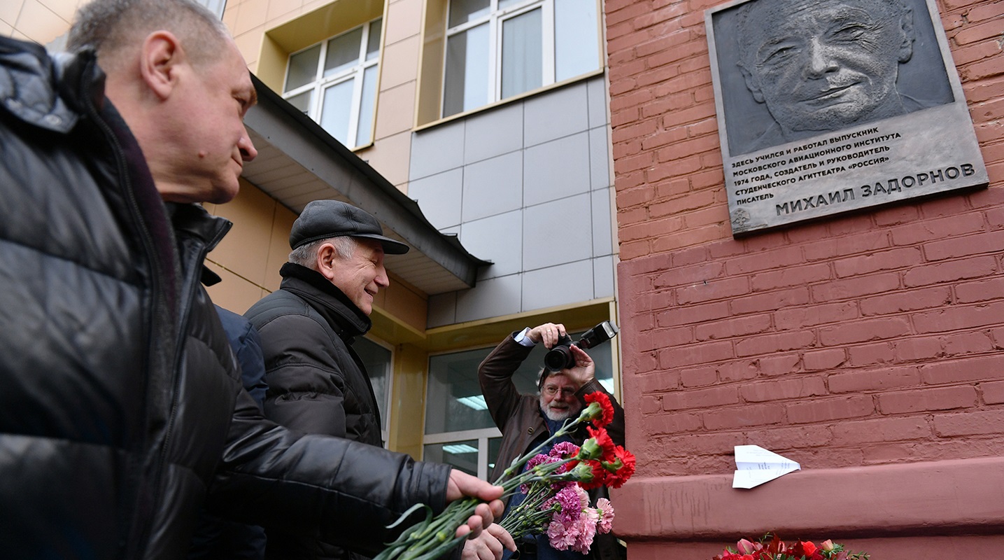 Министр культуры РФ, Председатель Российского военно-исторического общества Владимир Мединский принял участие в открытии мемориальной доски писателю-сатирику Михаилу Задорнову. Она была установлена в пятницу на здании Московского авиационного института, в котором писатель учился и работал.