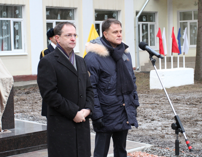 В Туле сегодня состоялось торжественное открытие памятника военным врачам и медицинским сестрам. В церемонии приняли участие Председатель Российского военно-исторического общества, Министр культуры Российской Федерации Владимир Мединский, Губернатор Тульской области Владимир Груздев, ветераны Великой Отечественной войны, а также руководство и учащиеся Гимназии №20 на проспекте Ленина 89, возле которой установлена скульптура.