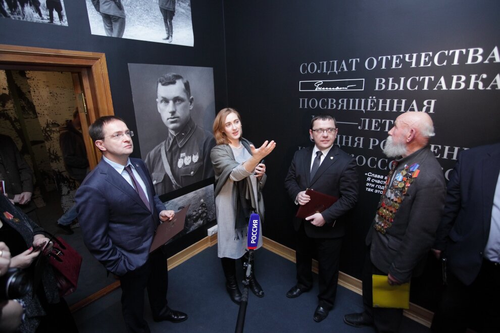 Сегодня в музее военной истории РВИО "Стрелецкие палаты" (Москва, Лаврушинский переулок д.17, стр.1) Министр культуры Российской Федерации, Председатель Российского военно-исторического общества Владимир Мединский открыл выставку «Солдат Отечества», посвящённую 120-летию Маршала Константина Рокоссовского.