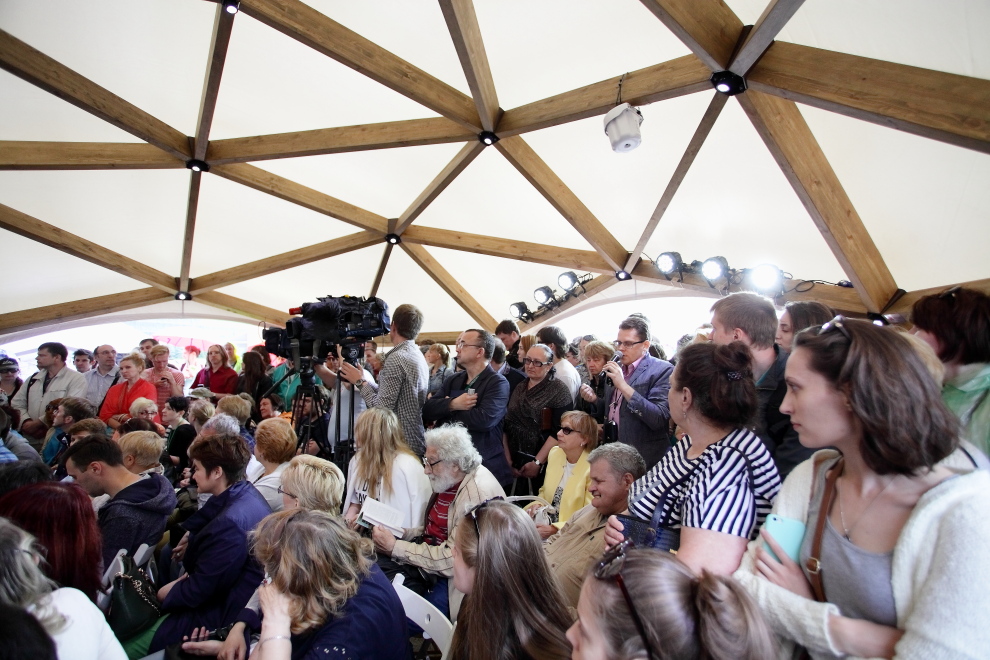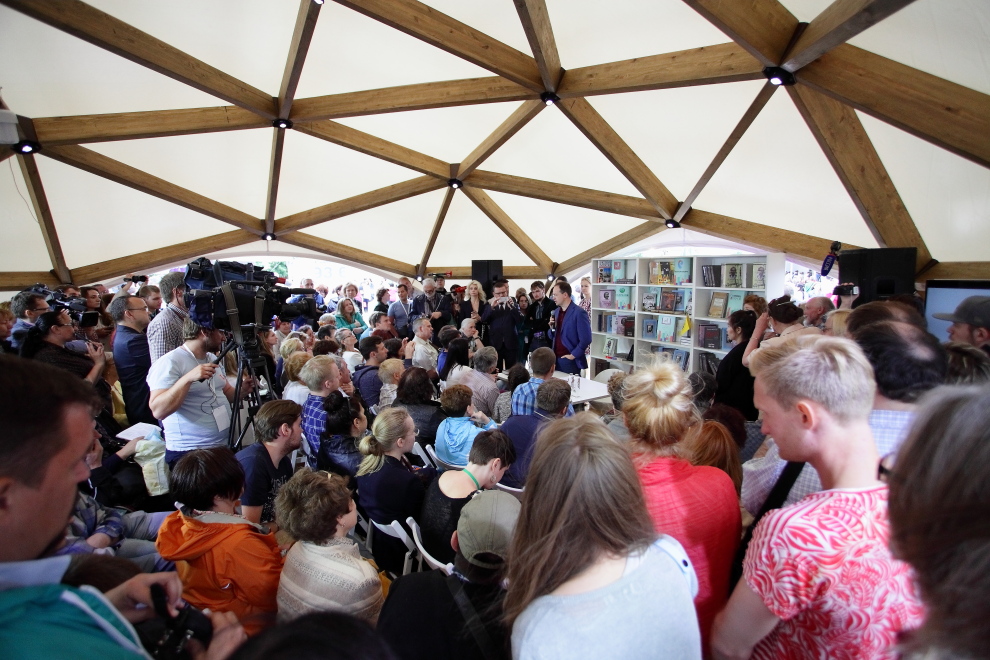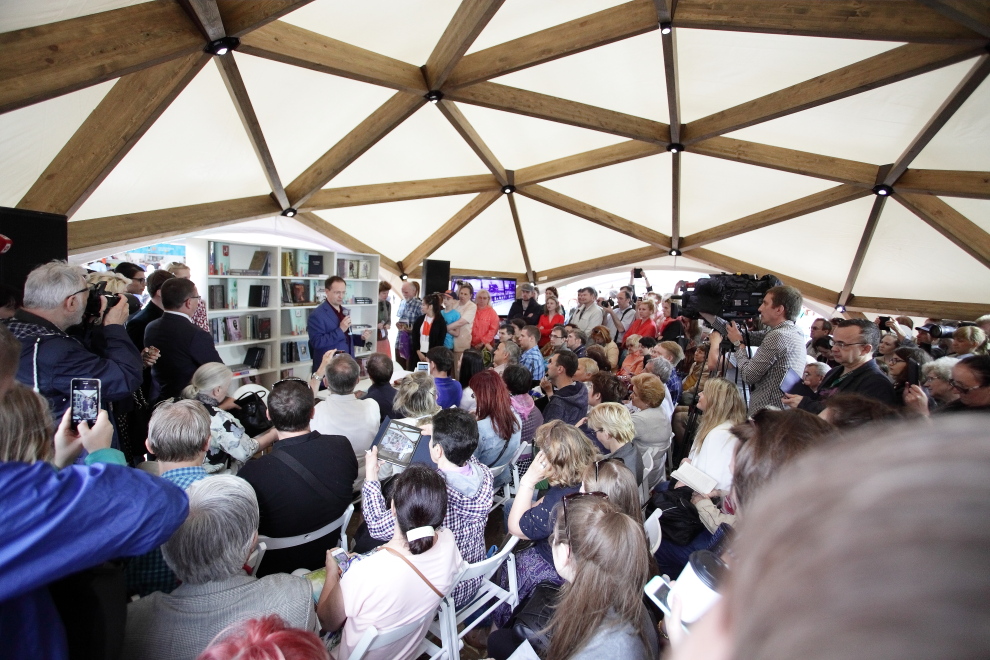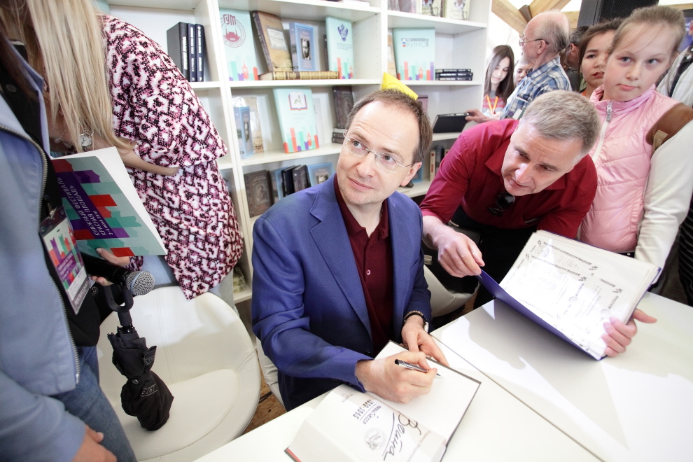 Сегодня на книжном фестивале "Красная площадь - 2016" Председатель Российского военно-исторического общества, Министр культуры Российской Федерации Владимир Мединский встретился с читателями.