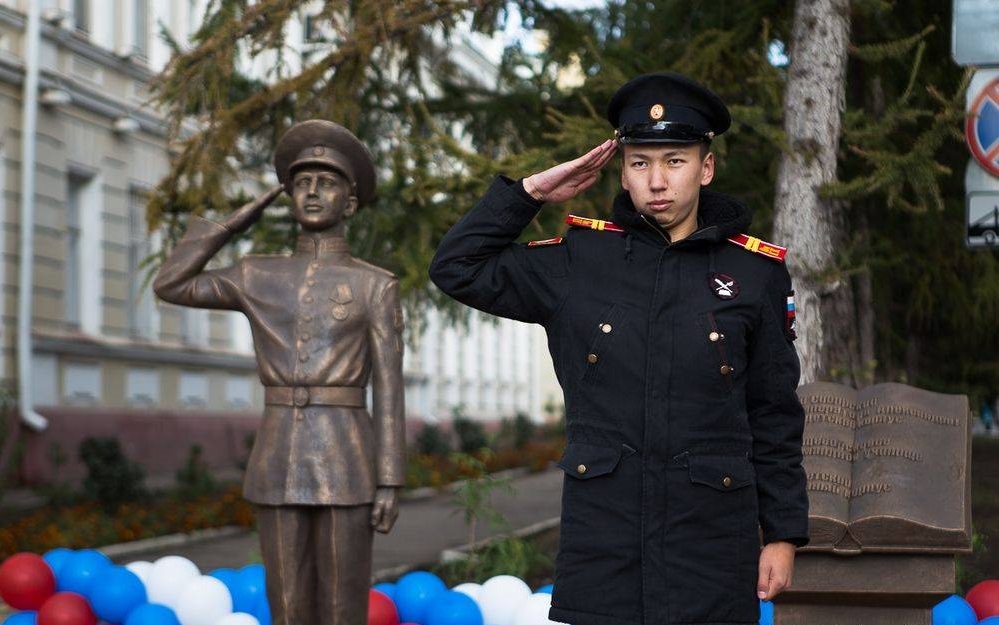 Владимир Мединский встретился с воспитанниками Омского кадетского корпуса, посетил музей и часовню и возложил цветы к мемориалу генерала армии, Героя Советского Союза Василия Маргелова (1908–1990).