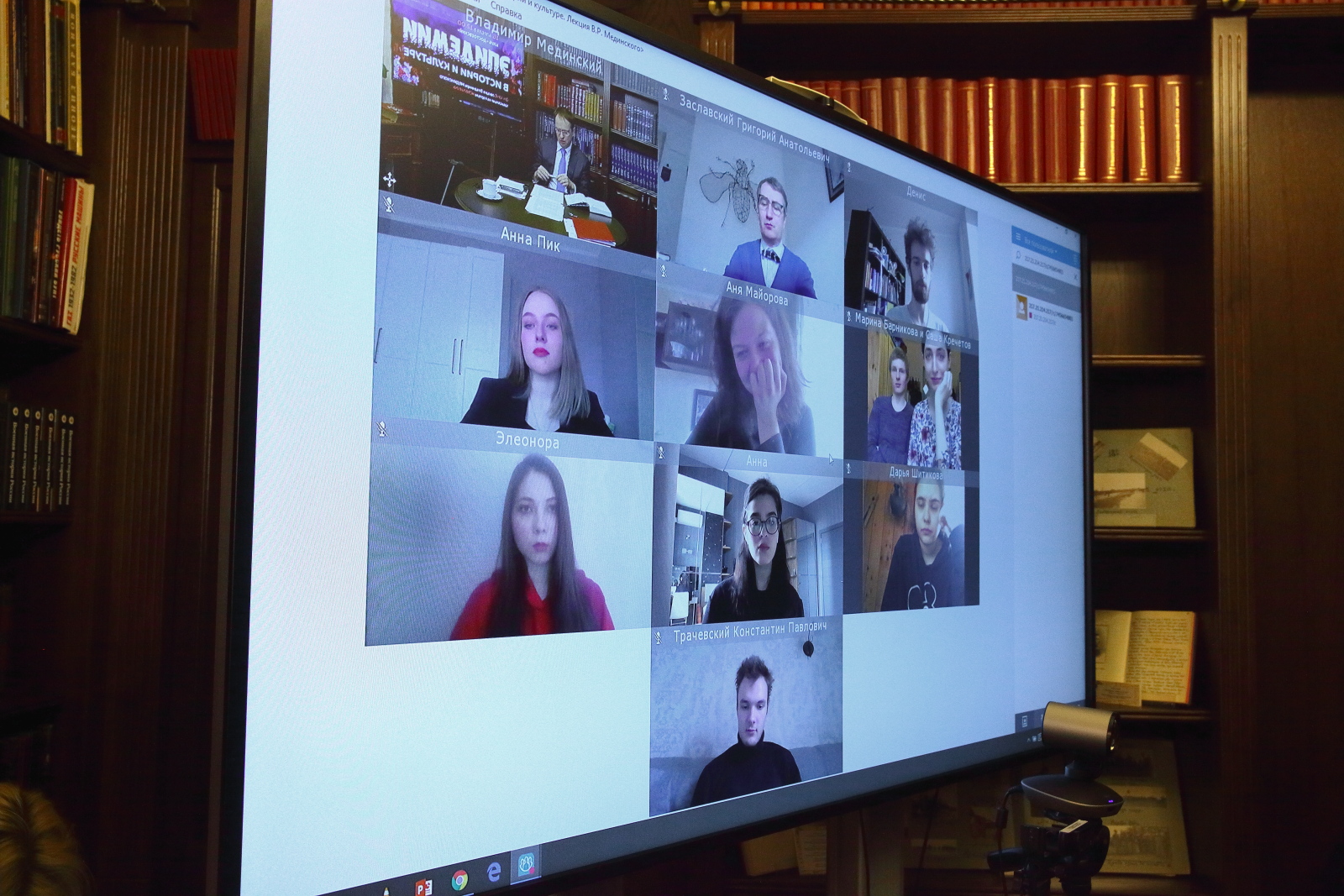 Помощник Президента РФ, доктор исторических наук Владимир Мединский прочел онлайн-лекцию «Эпидемии. В истории и культуре». Главными слушателями лекции стали студенты Российского института театрального искусства - ГИТИСа, по просьбе которых организовано мероприятие.