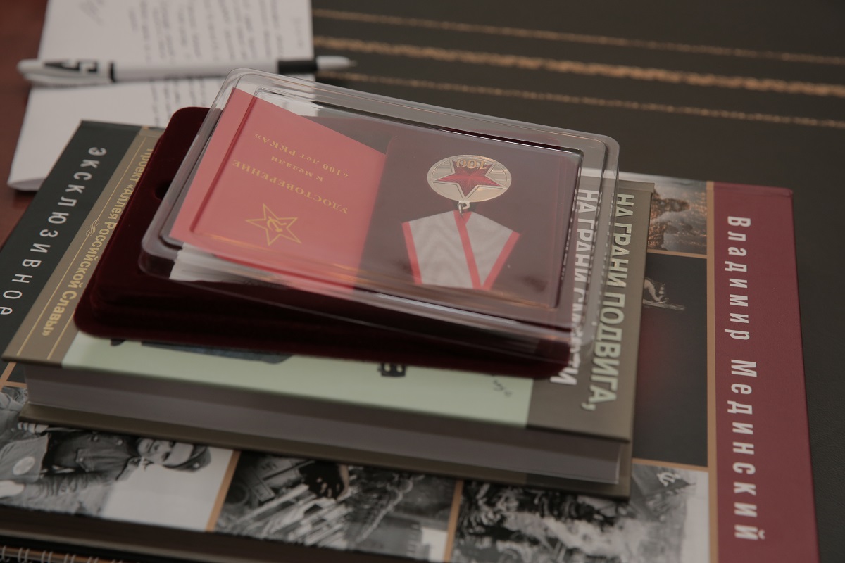 21 февраля Министр культуры Российской Федерации, председатель РВИО Владимир Мединский поздравил ветеранов Великой Отечественной войны с Днем защитника Отечества и наградил их памятными медалями «100 лет РККА».