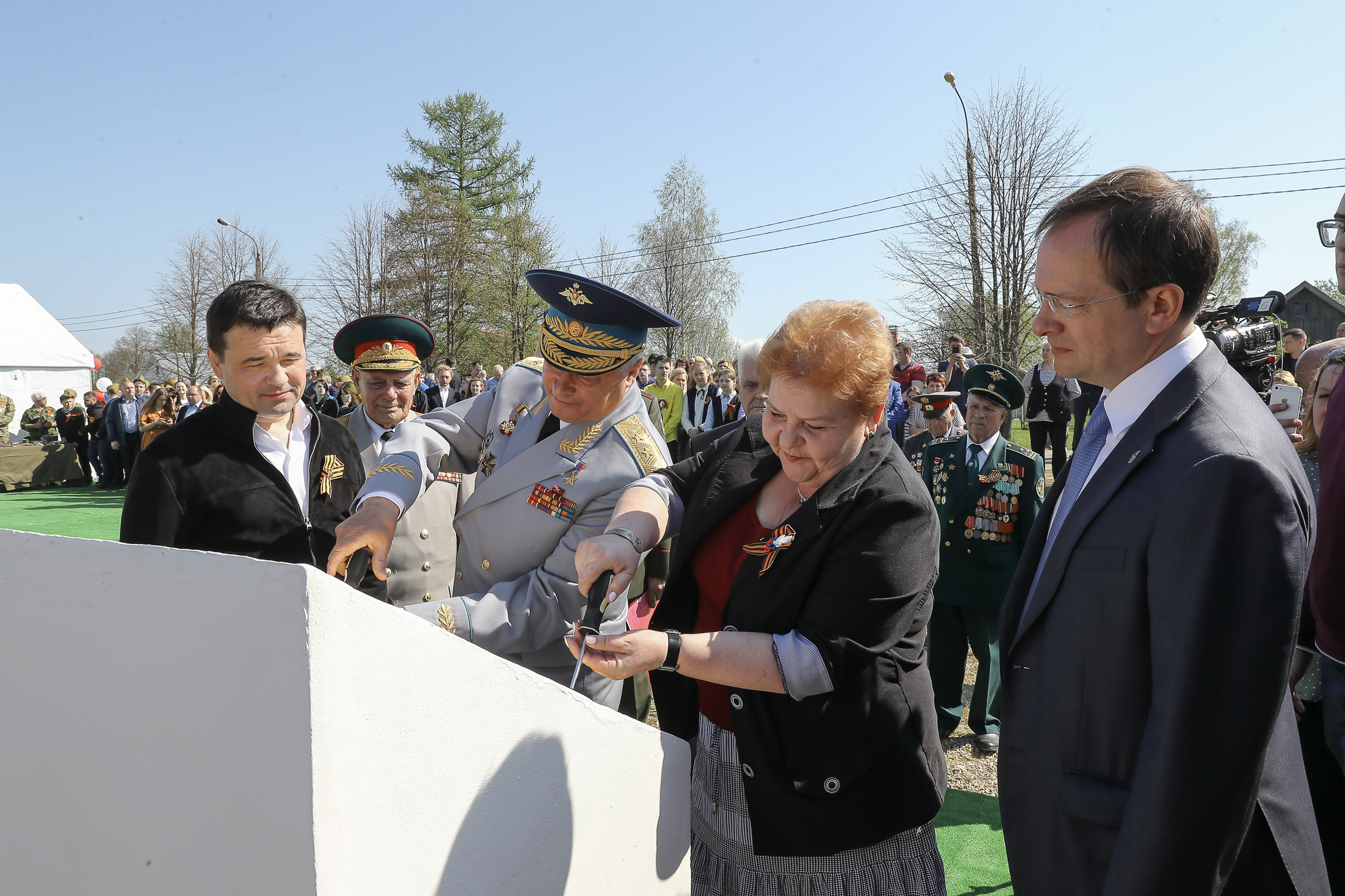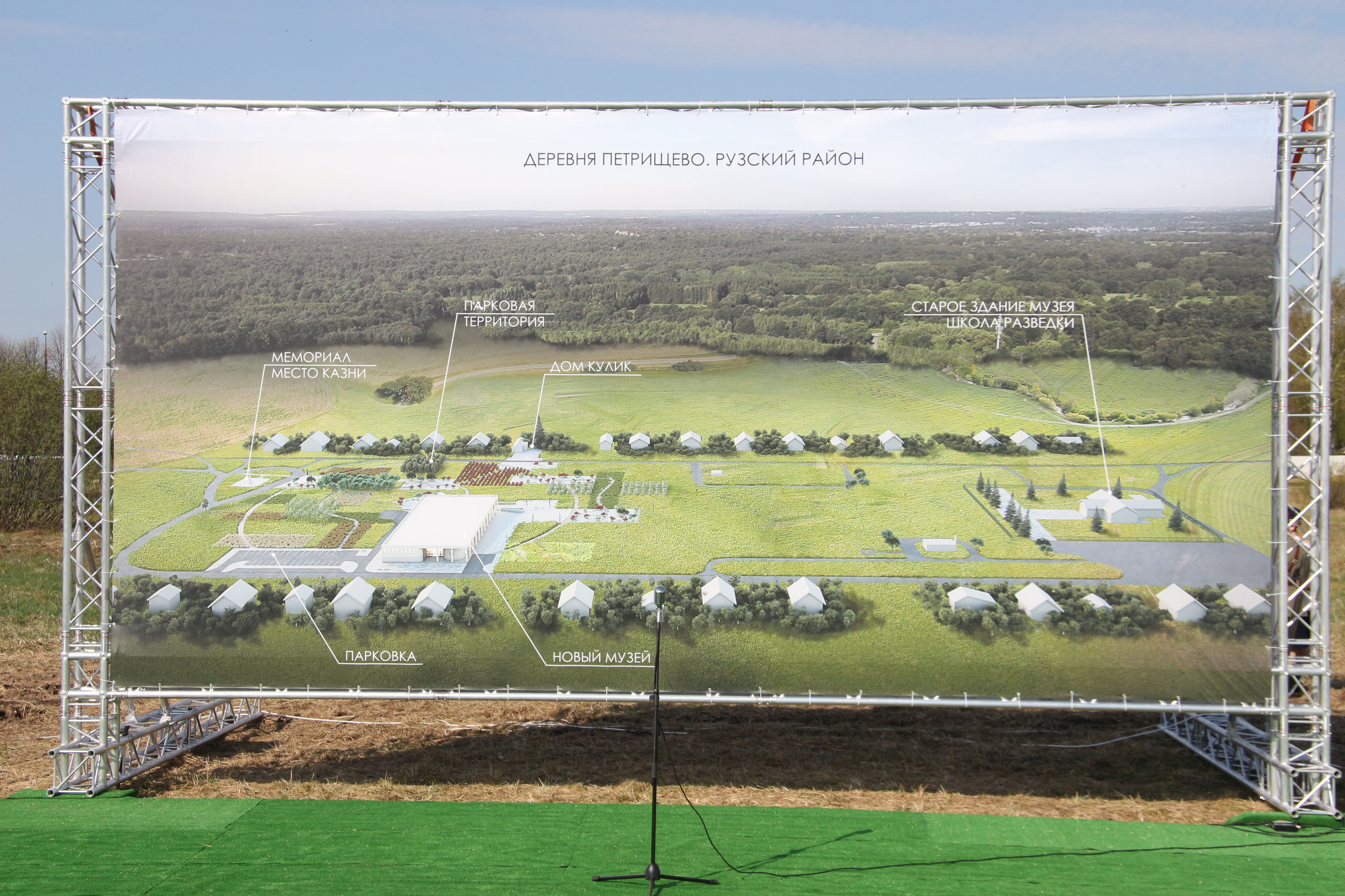 Церемония прошла на территории будущего комплекса в селе Петрищево Рузского городского округа Московской области. В ней также приняли участие губернатор Московской области Андрей Воробьев, первый заместитель начальника Главного управления Генерального штаба Вооруженных сил РФ Владимир Алексеев, исполнительный директор Российского военно-исторического общества Александр Барков и другие.