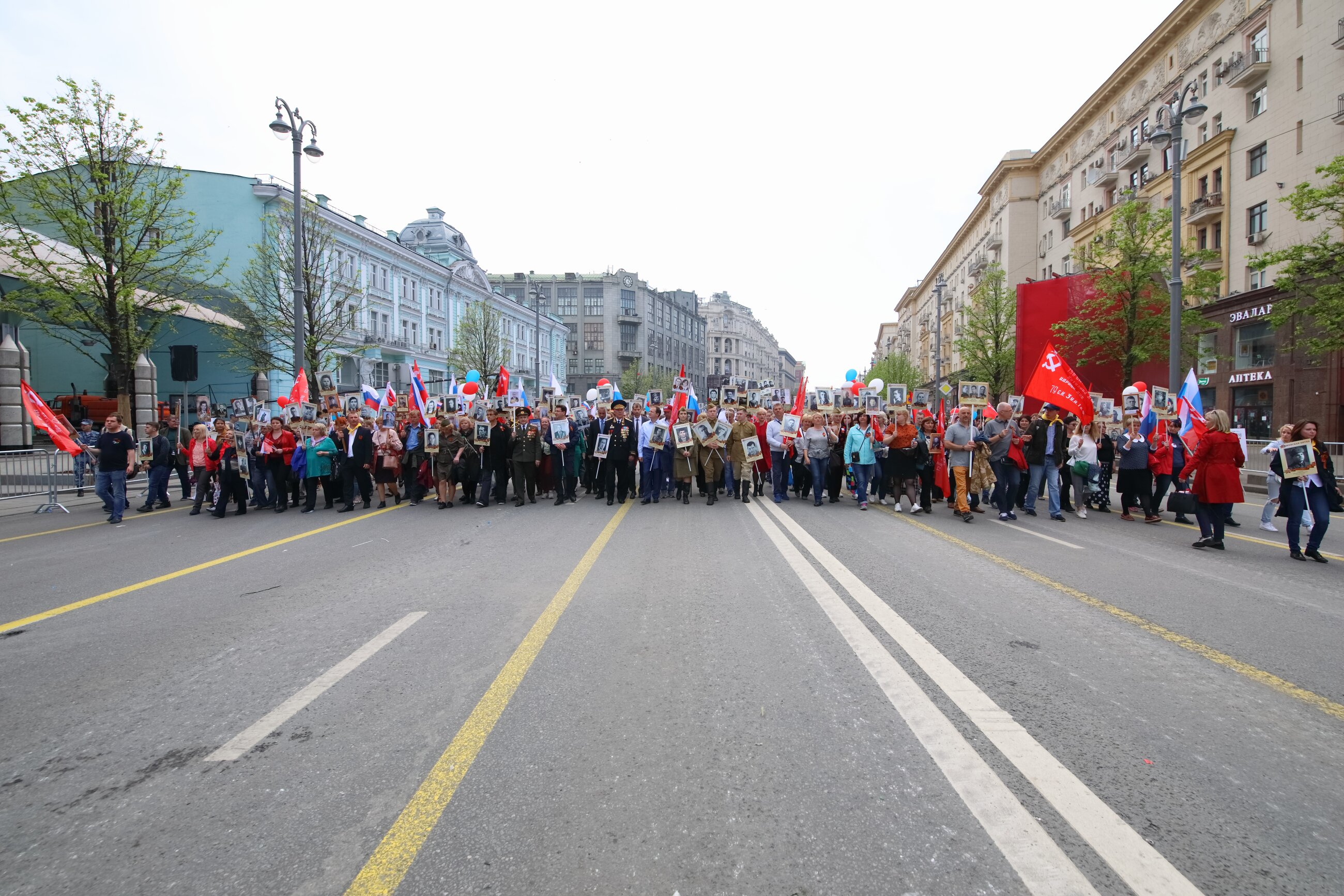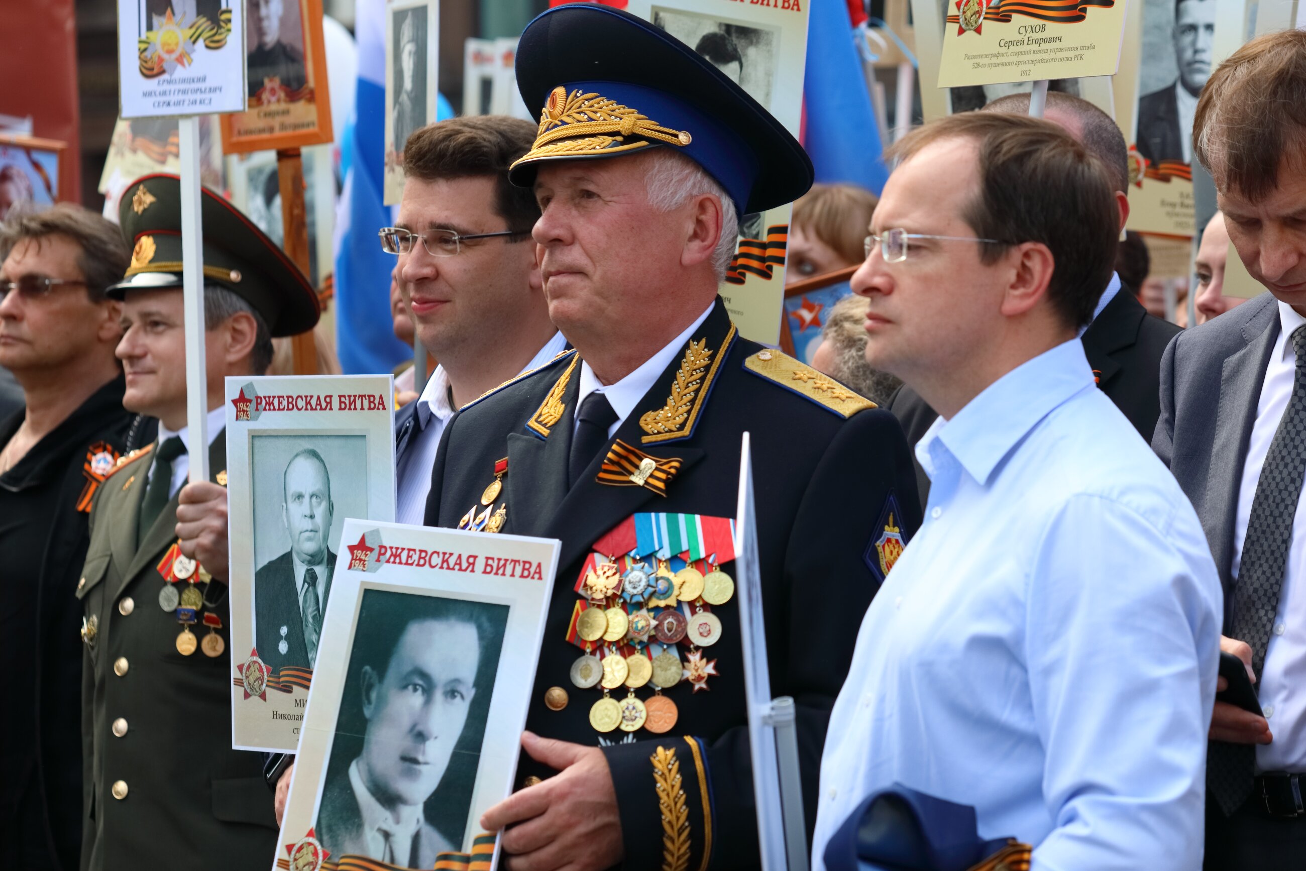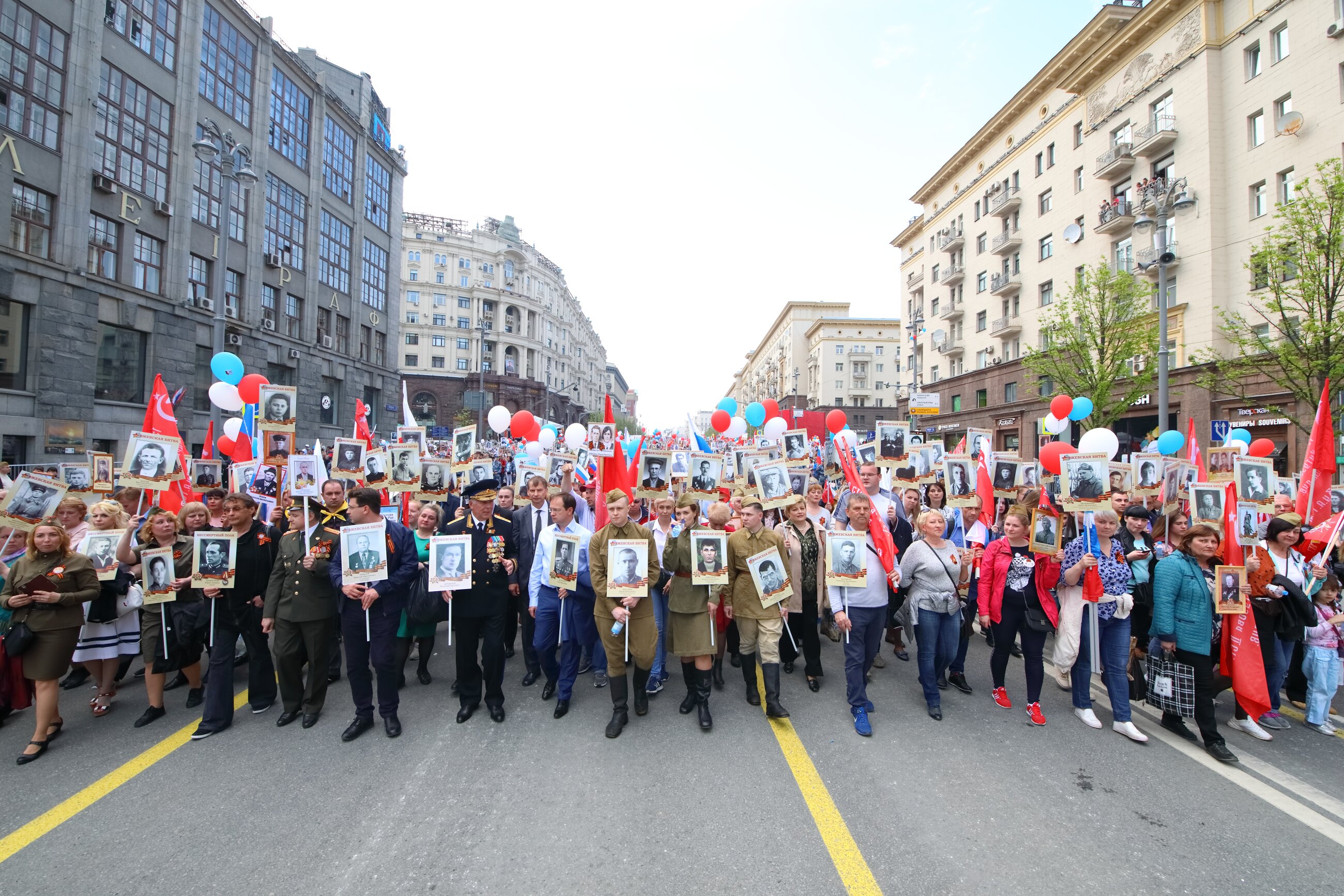Возглавил колонну Министр культуры РФ, Председатель Российского военно-исторического общества Владимир Мединский, который нес фотографию своего двоюродного деда Петра Яковлевича Кузнецова, воевавшего в армейской разведке.