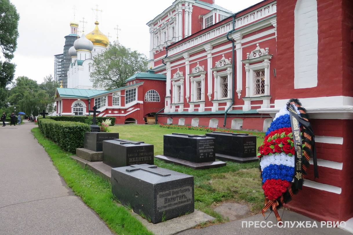 - Многие проекты рождаются, благодаря средствам массовой информации. Например, журнал "Родина" и руководство "Российской газеты" обратило несколько лет назад наше внимание на забытую историю последнего русского генерал-фельдмаршала Милютина. Он не так много воевал, но как никто другой сделал много для преобразования Русской Армии в армию современную. Он - автор и исполнитель военной реформы. У него удивительная судьба, у него удивительная семья, удивительная жизнь. Благодаря обращению журналистов нам удалось найти на Новодевичьем кладбище заброшенную могилу Милютина и его супруги - они умерли с шагом в три дня, прожив вместе лет шестьдесят, - и могилы эти восстановить. Сейчас в этом месте всегда живые цветы.