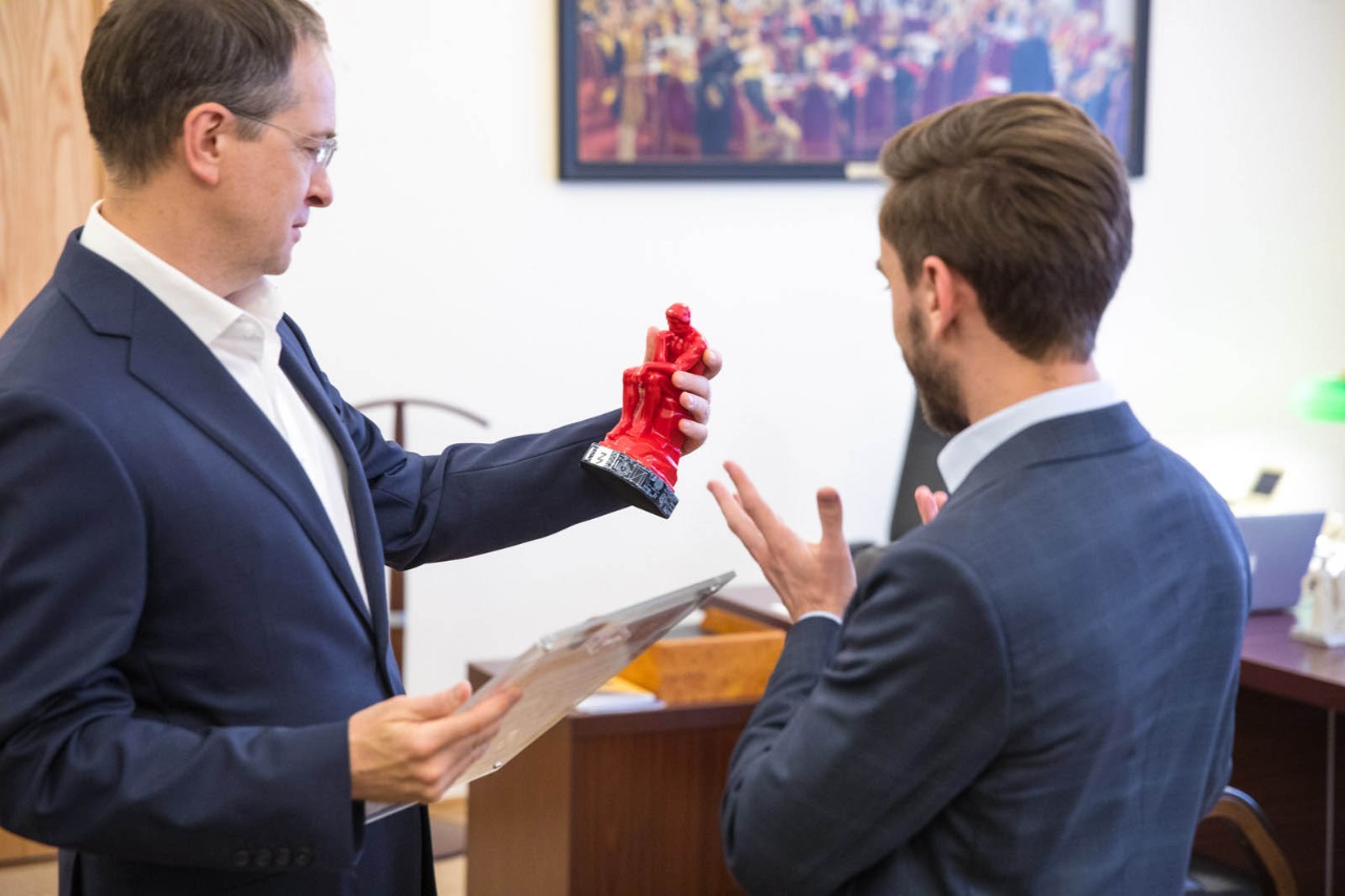 Генеральный директор Российского общества «Знание» Максим Древаль вручил Владимиру Мединскому благодарность за выдающееся выступление, охватившее более 1 000 000 зрителей, и выразил признательность за значимый вклад в развитие и просвещение молодежи через активное участие в деятельности «Знания».