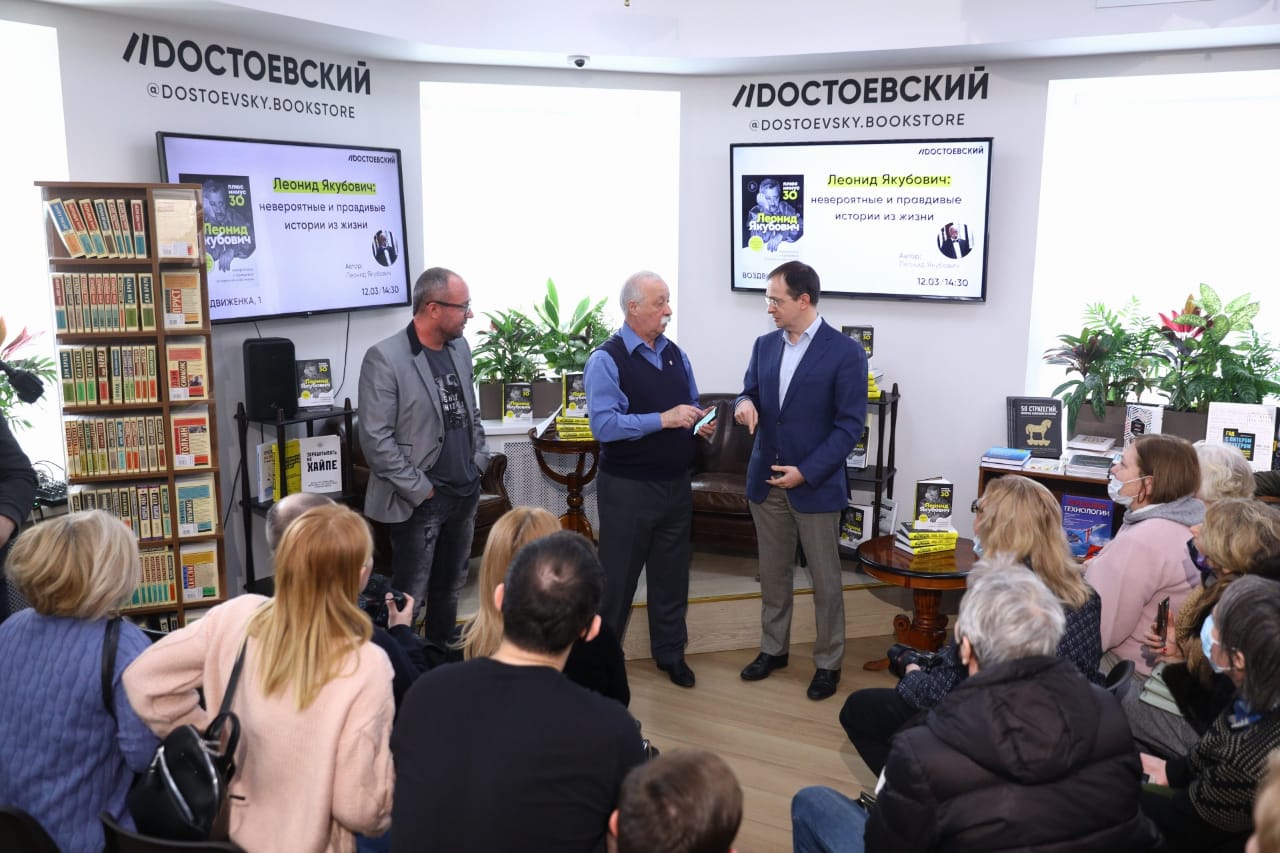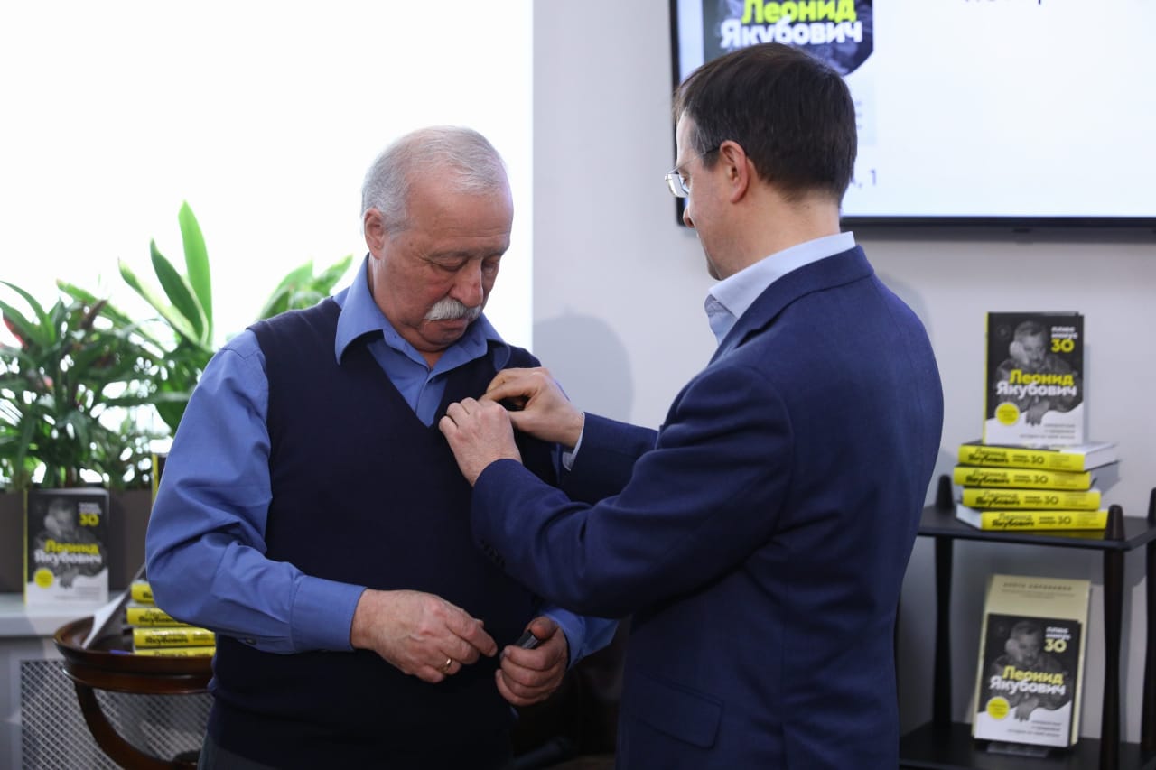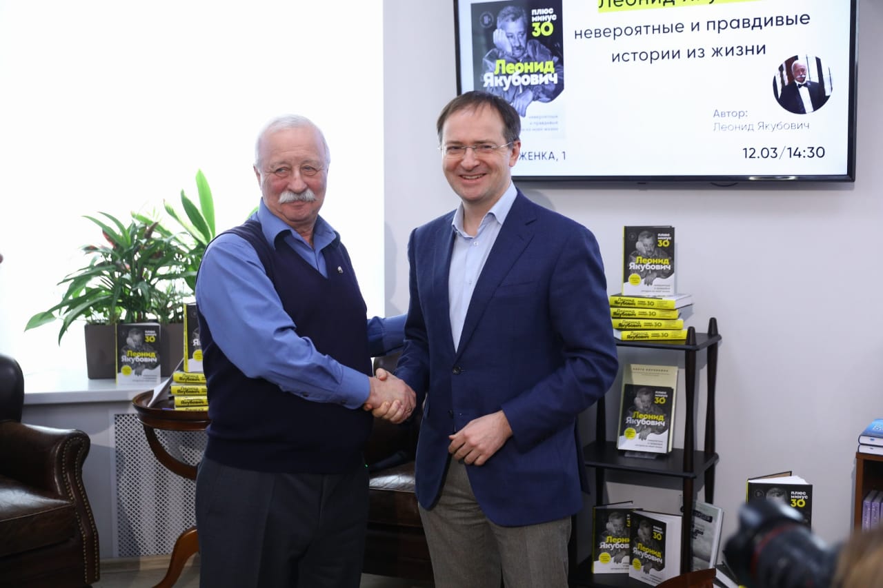 Помощник Президента РФ, Председатель Российского военно-исторического общества Владимир Мединский вручил билет и знак почетного члена РВИО телеведущему, актеру, Народному артисту России Леониду Якубовичу. Церемония прошла в пятницу в Книжном клубе «Достоевский» в Москве.