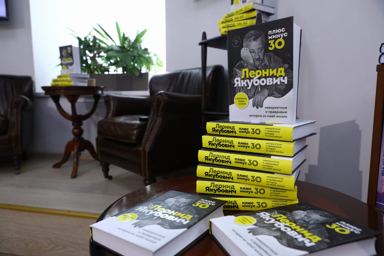 В рамках Книжного клуба Леонид Якубович представил свою новую книгу «Плюс минус 30: невероятные и правдивые истории из моей жизни». В ней описаны школьные годы ведущего и пионерские приключения, исключение из школы и трудовая жизнь в бюро Туполева, студенчество, КВН и первые гастроли. Телеведущий поделился с читателями историями о том, как он первый раз прыгал с парашютом по просьбе подруги, работал проводником, учился водить вертолет. Вместе с автобиографической частью в издание вошли рассказы, пьесы, современные басни и застольные стихи.
