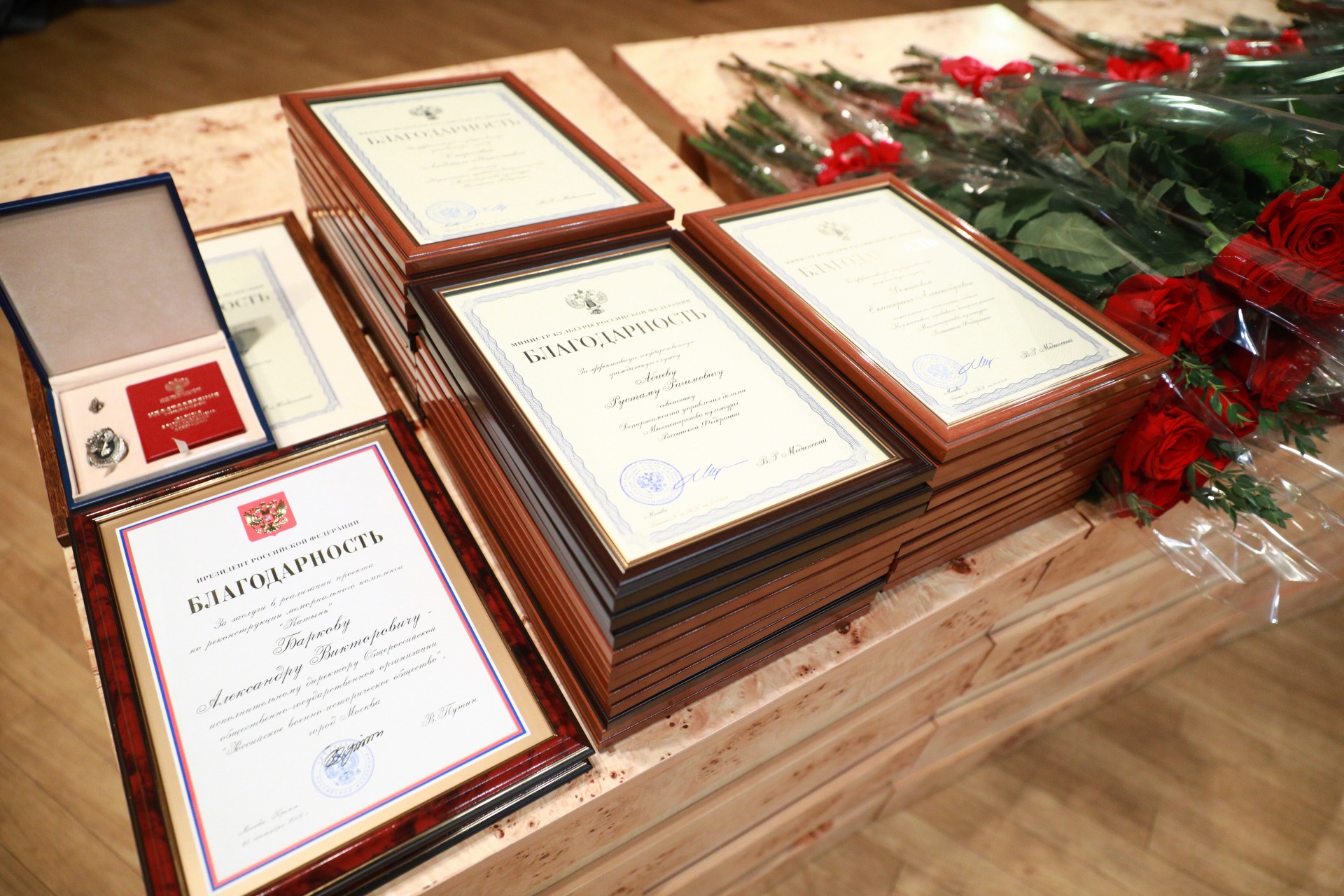 Благодарности Президента Российской Федерации удостоены Исполнительный директор РВИО Александр Барков, заместитель начальника научного отдела РВИО Виктория Петракова, скульптор, член РВИО Денис Стритович.